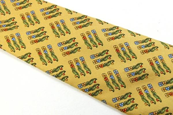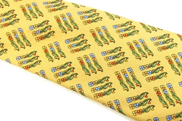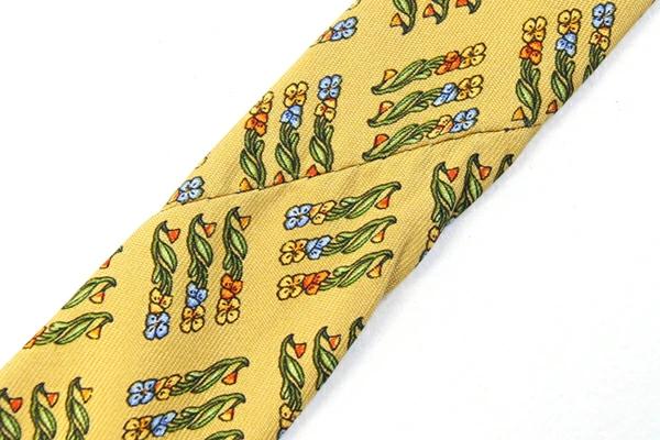 Pre-owned Salvatore Ferragamo tie, mustard, 100% silk, floral print, for men, suitable for suits, business fashion.