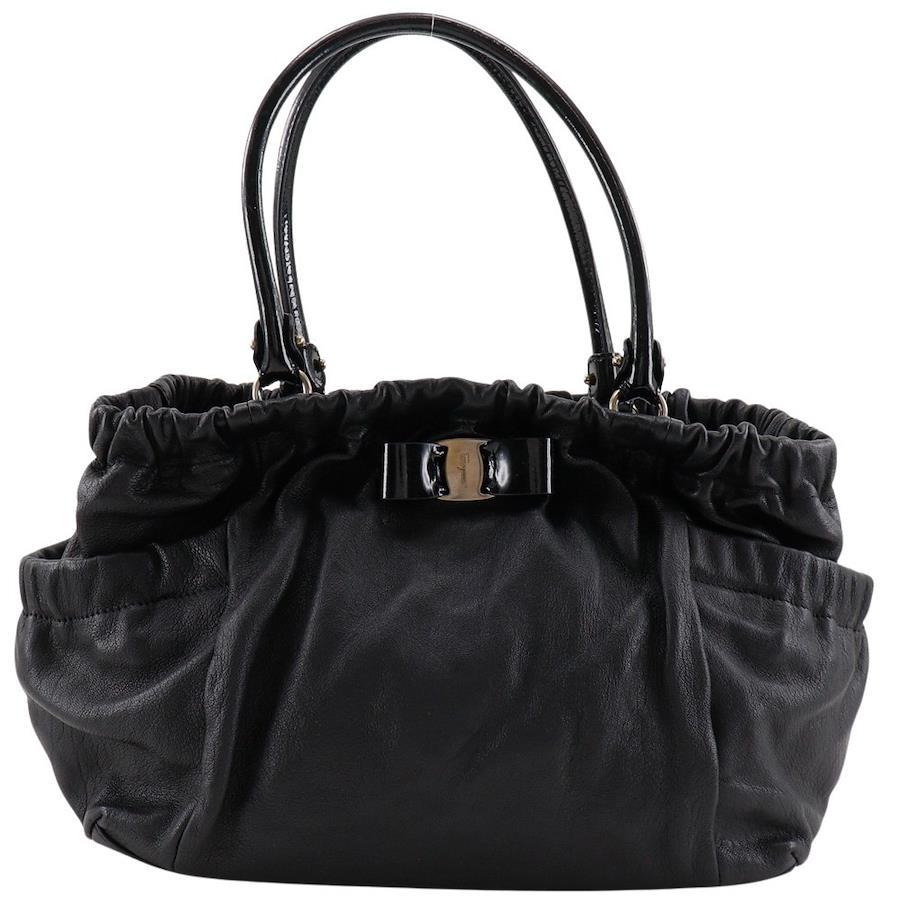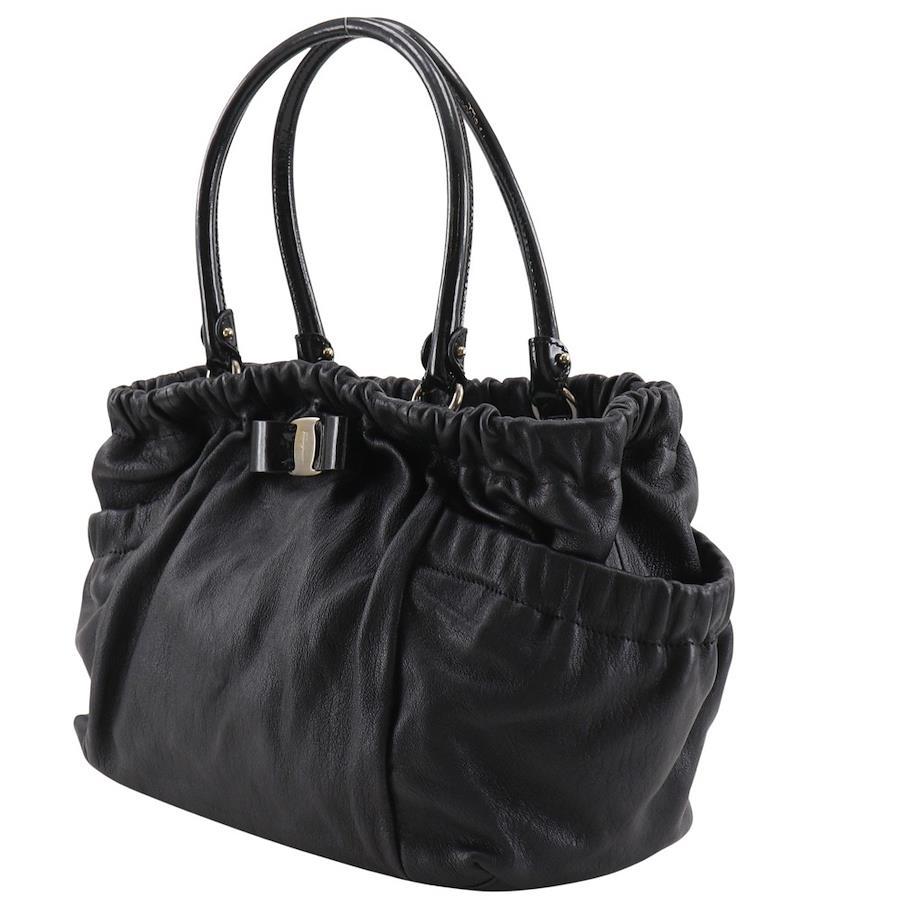 Pre-owned Salvatore Ferragamo Vara Ribbon AU-21/C784 Leather and Enamel Black Women's Tote Bag