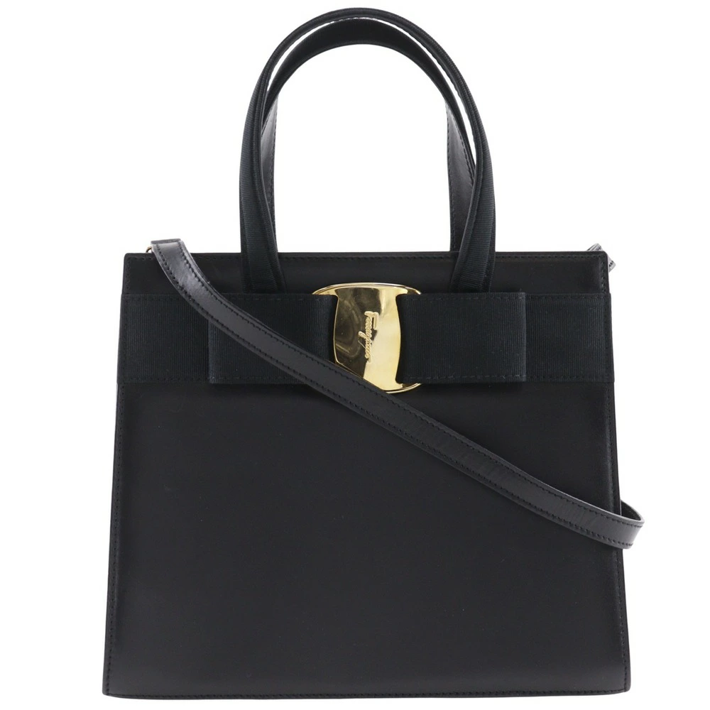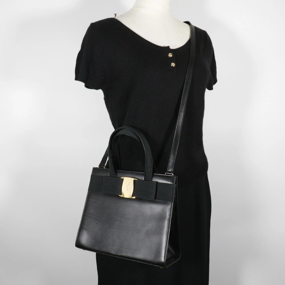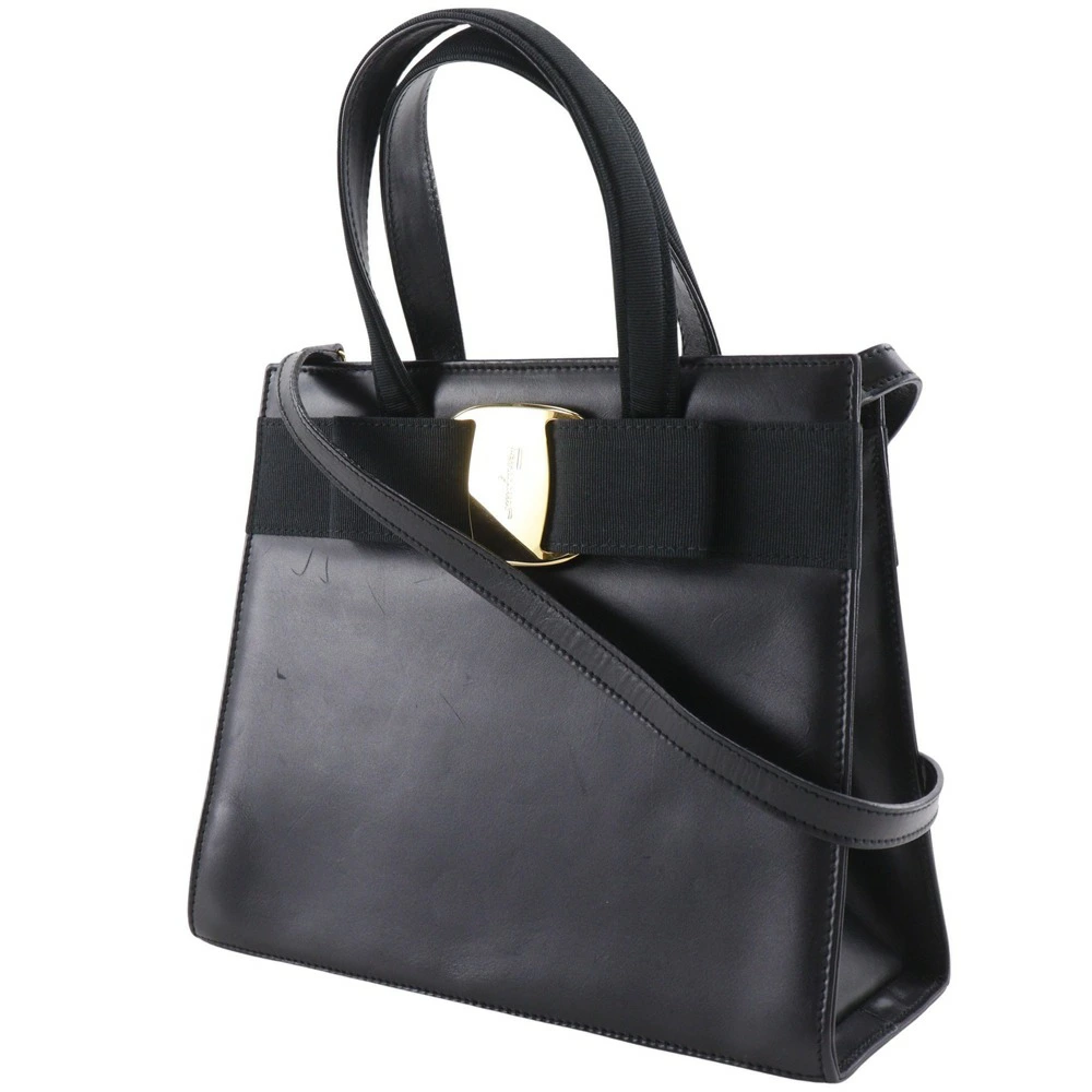 Pre-owned Salvatore Ferragamo Vara Ribbon handbag, 2-way shoulder bag, leather, made in Italy, black, magnetic closure, crossbody, handbag, women's.