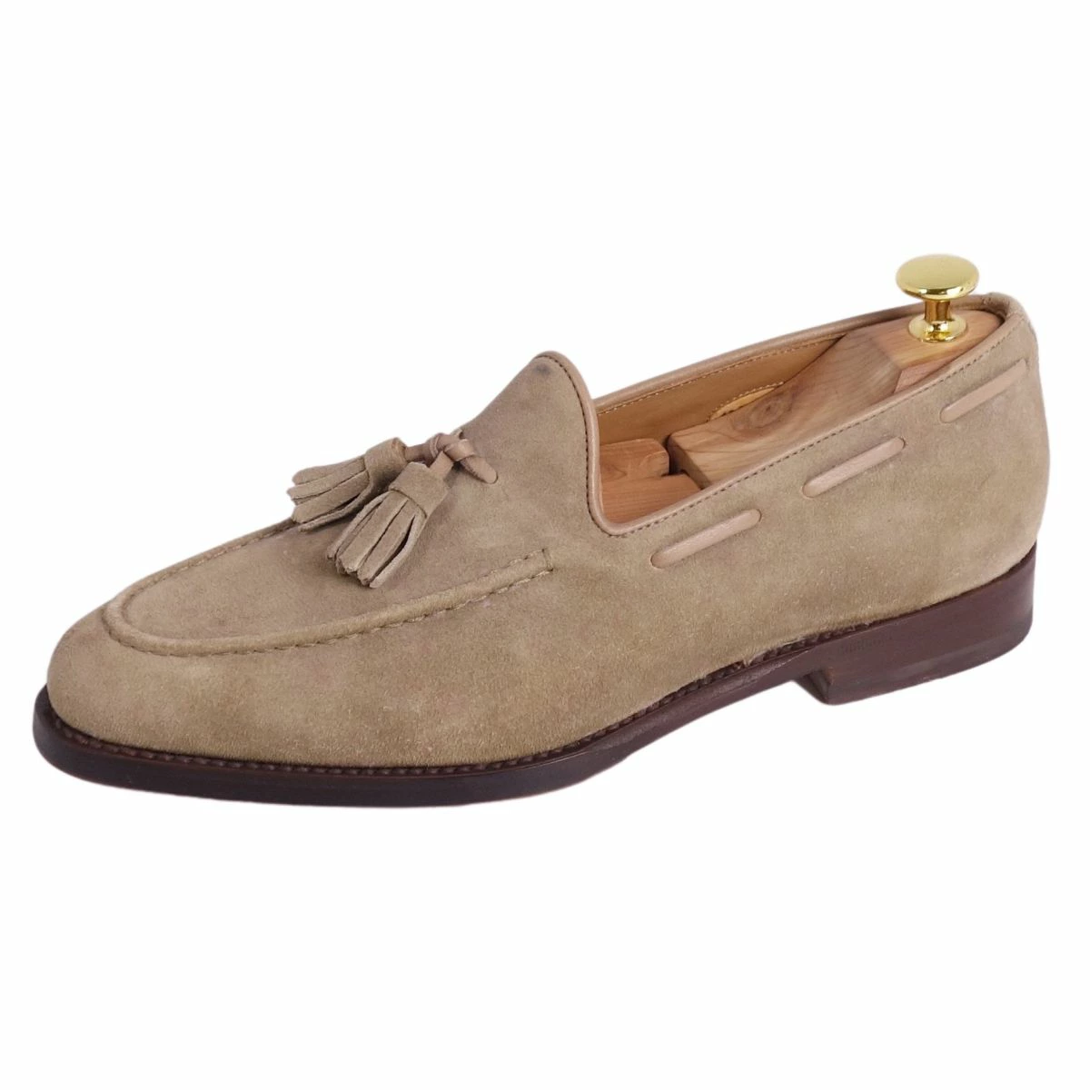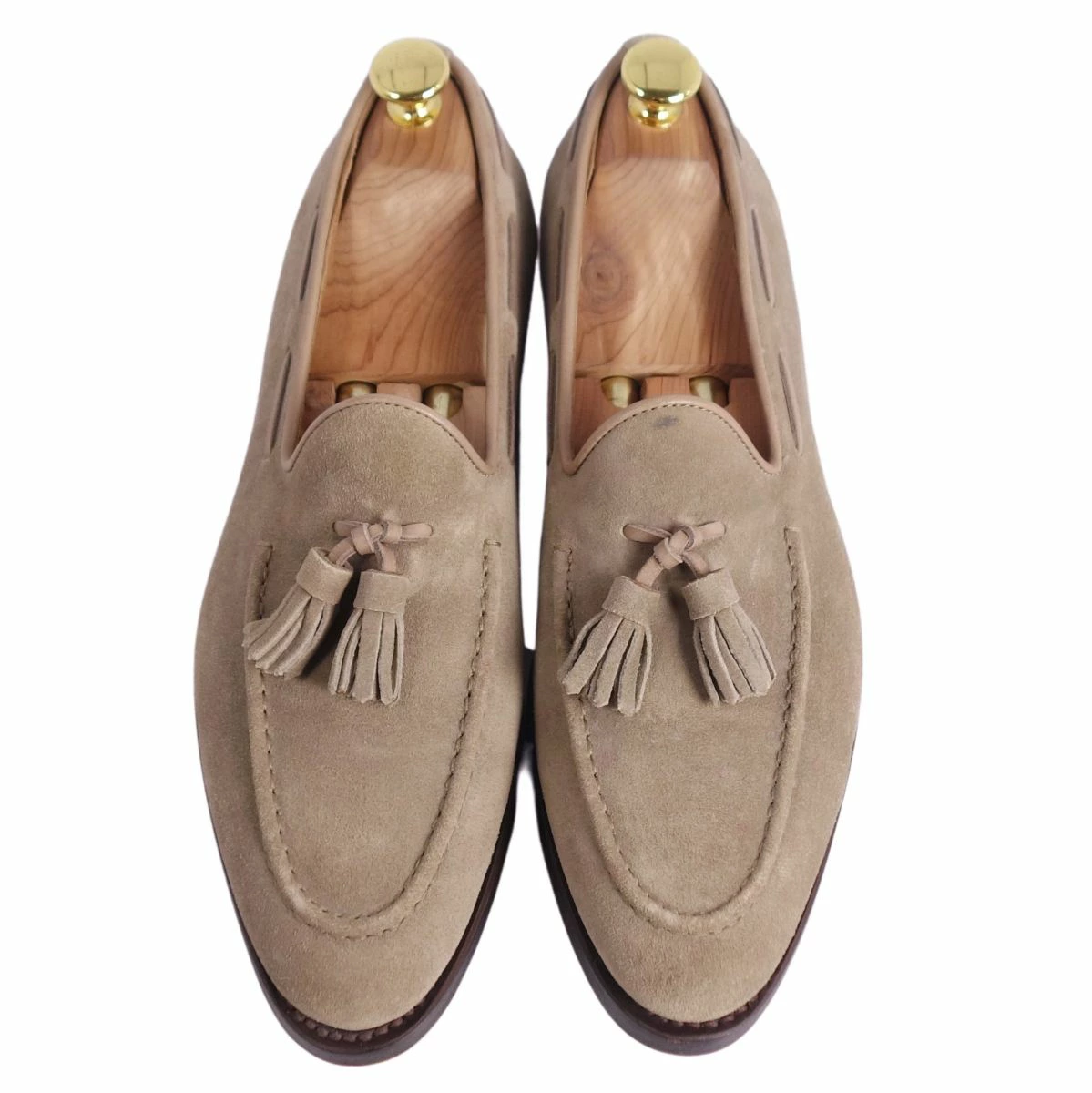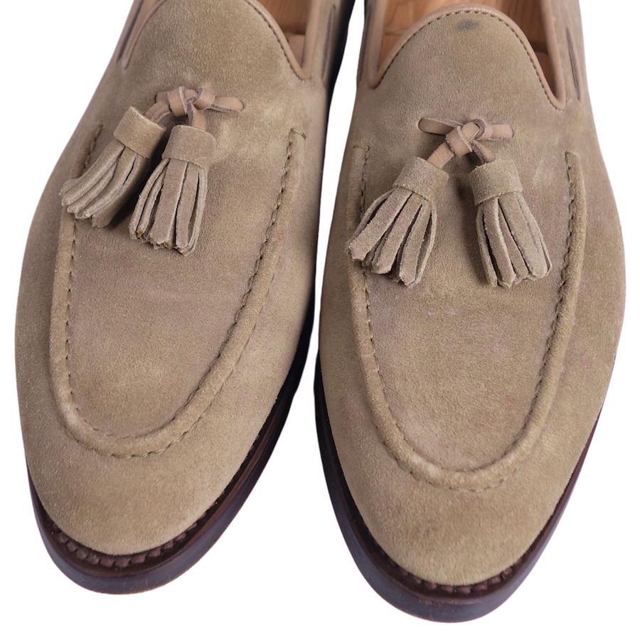 ■商品名サントーニ ビームス Santoni BEAMS ローファー モカシン タッセル スウェードレザー 革靴 メンズ ベージュ サイズ4.5(24cm相当)■状態説明・上質なスウェードレザーを贅沢に使用した、Santoni BEAMSのローファーです♪・シンプルなデザインは洗練されたスタイリングを演出するアイテムです◎・アッパーやかかと部分に薄汚れが御座いますが、ご使用に差し支えるようなものはなく全体的にキレイな状態です!【季節感:オールシーズン】【付属品:なし「シューツリーの付属は御座いません」】■素材スウェードレザー■カラーベージュ■表記サイズ4.5(24cm相当)■実寸サイズアウトソール:約28.5cm幅:約10cm■状態ランクAB 使用感があるが、傷や汚れの気にならない状態■店舗管理番号ce09mt-rm10e33302mens_beige