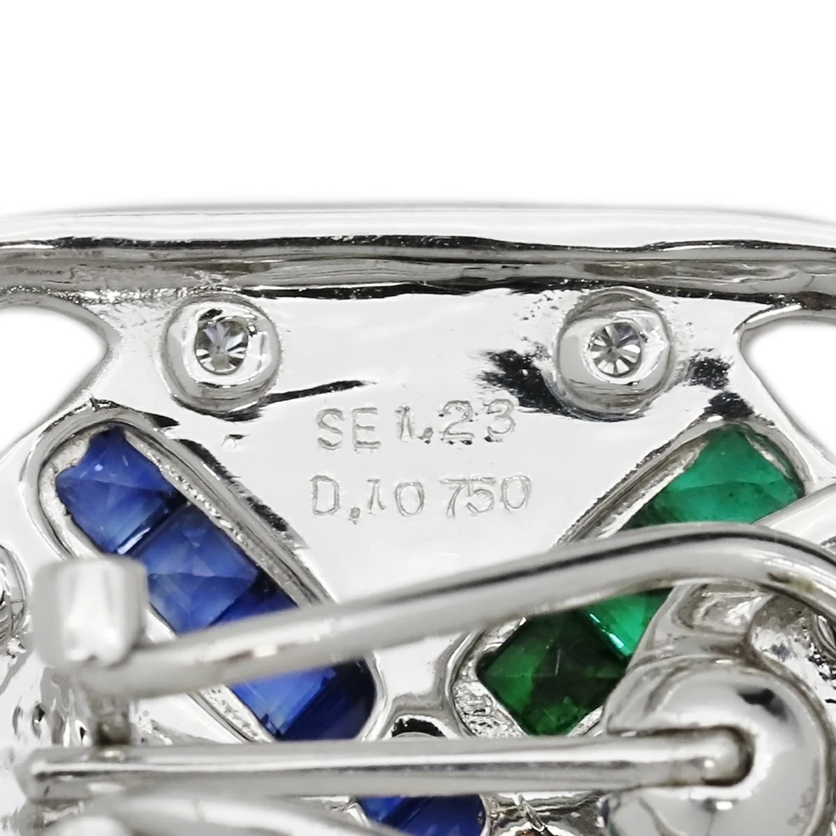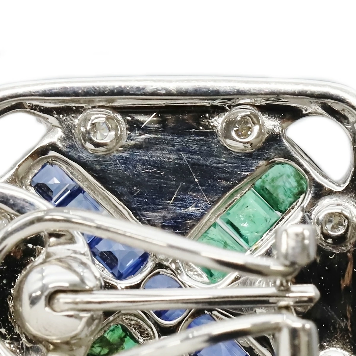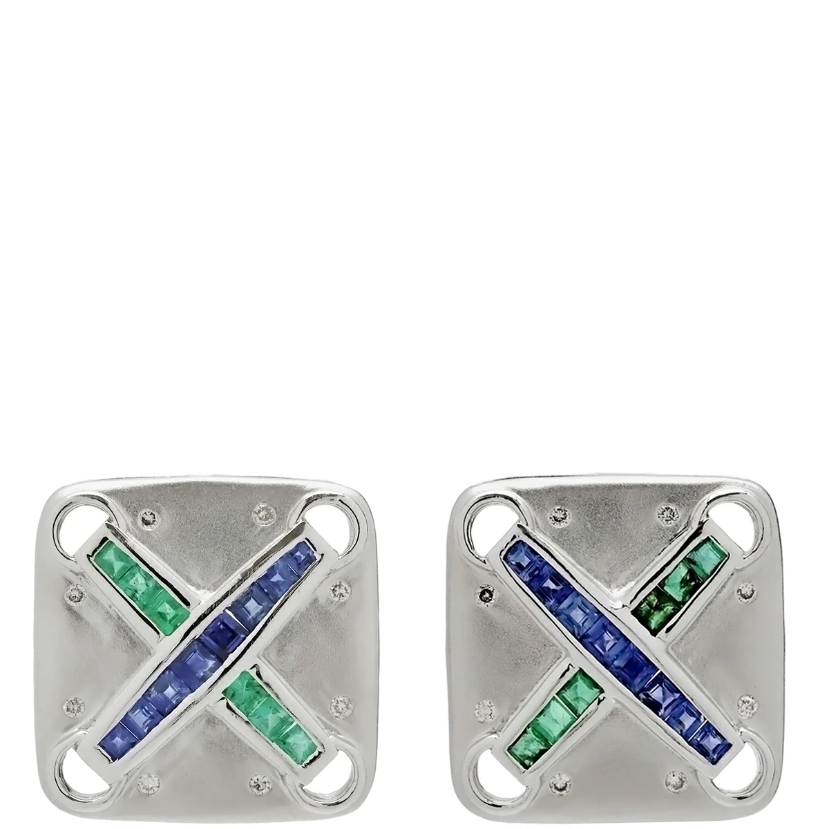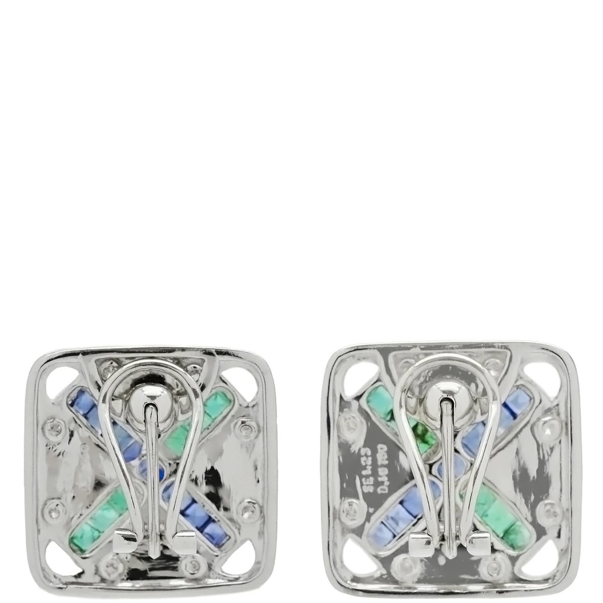ノンブランド NON BRAND ピアス サファイア エメラルド ダイヤピアス K18WG サファイア エメラルド ダイヤモンド ホワイトゴールド 750 マルチストーン スクエア 四角 クロス ブルー グリーン - メンズ レディース ユニセックス定番 人気 美品 【中古】