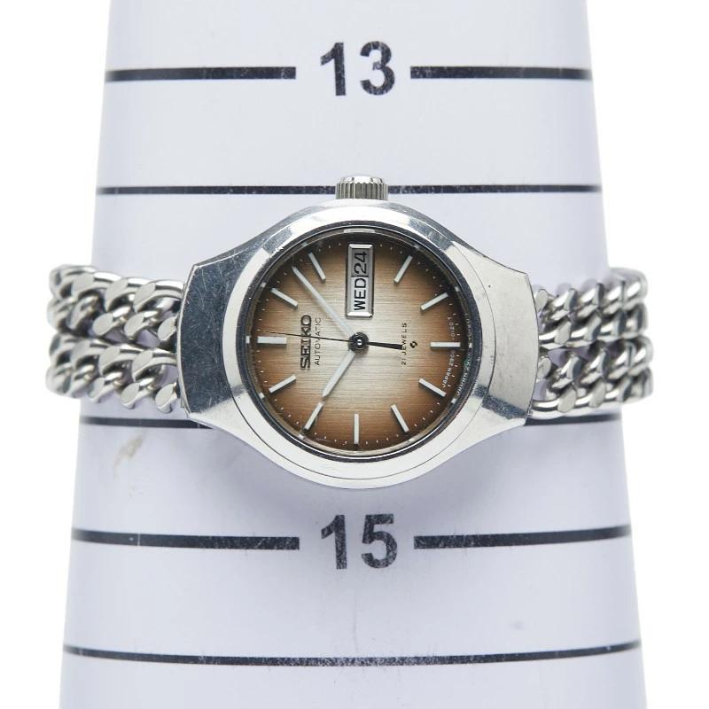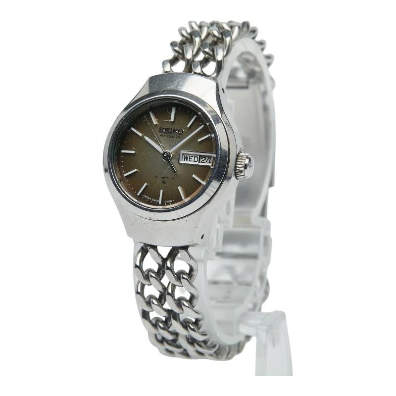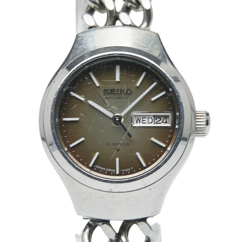 Pre-owned Seiko 21-jewel Day-Date Automatic Stainless Steel Women's Watch 2206.0070 with a non-original strap.