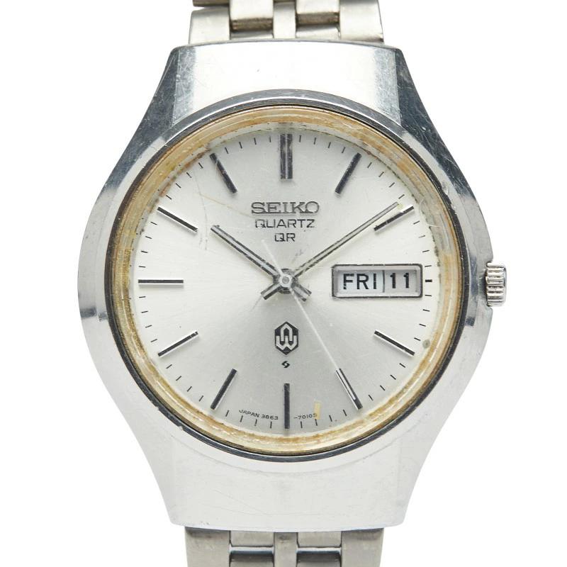 Pre-owned Seiko 3-hand Day-Date Watch 3863-7010, Quartz Movement, Silver Dial, Stainless Steel, Women's