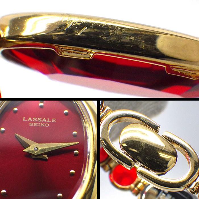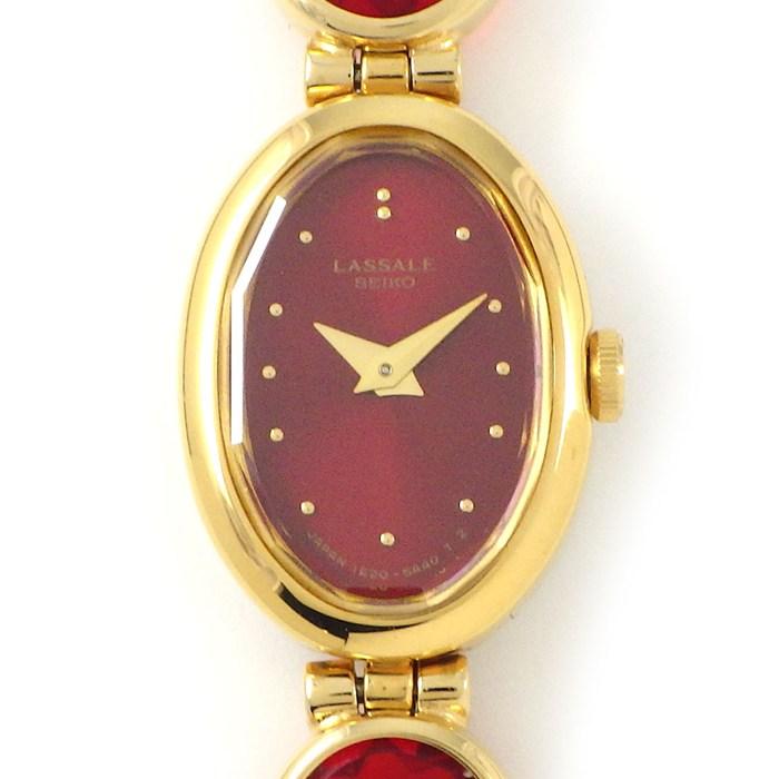 ■商品名SEIKO 腕時計 LASSALE バングルウォッチ 1E20-3A60 オーバル サンレイ レッド文字盤 GP クオーツアナログ 【箱・保付き】 【中古】