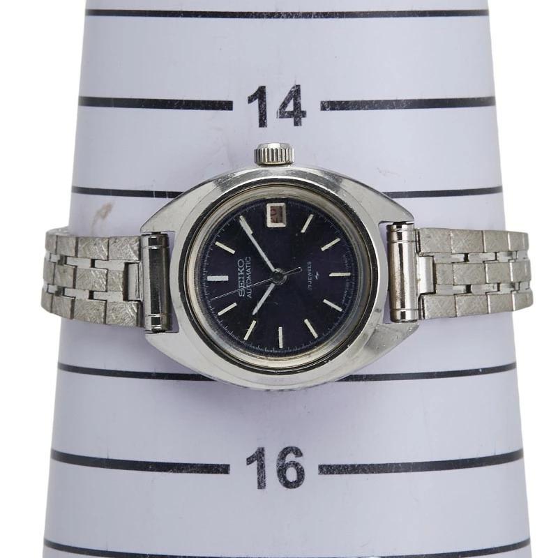 Pre-owned Seiko watch 2205-0420, automatic, purple dial, stainless steel, women's.