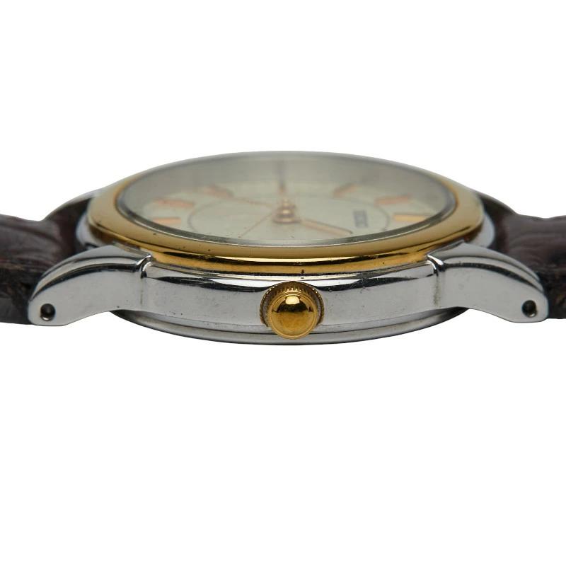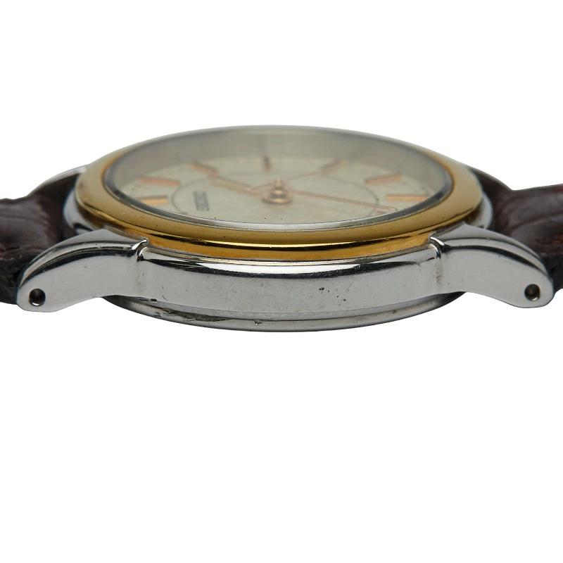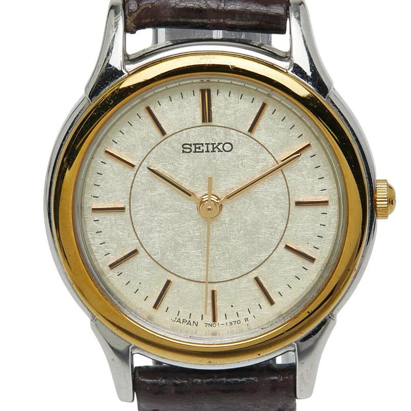 Pre-owned Seiko women's quartz watch with beige dial, stainless steel and leather strap.