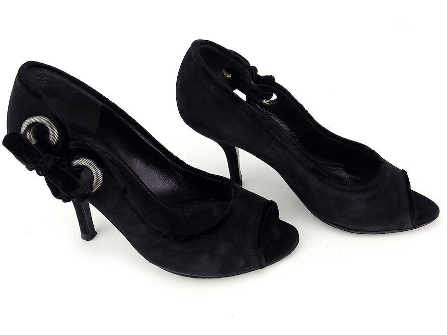 Pre-owned Sergio Rossi open-toe pumps, #34, high heels, black and silver, women's