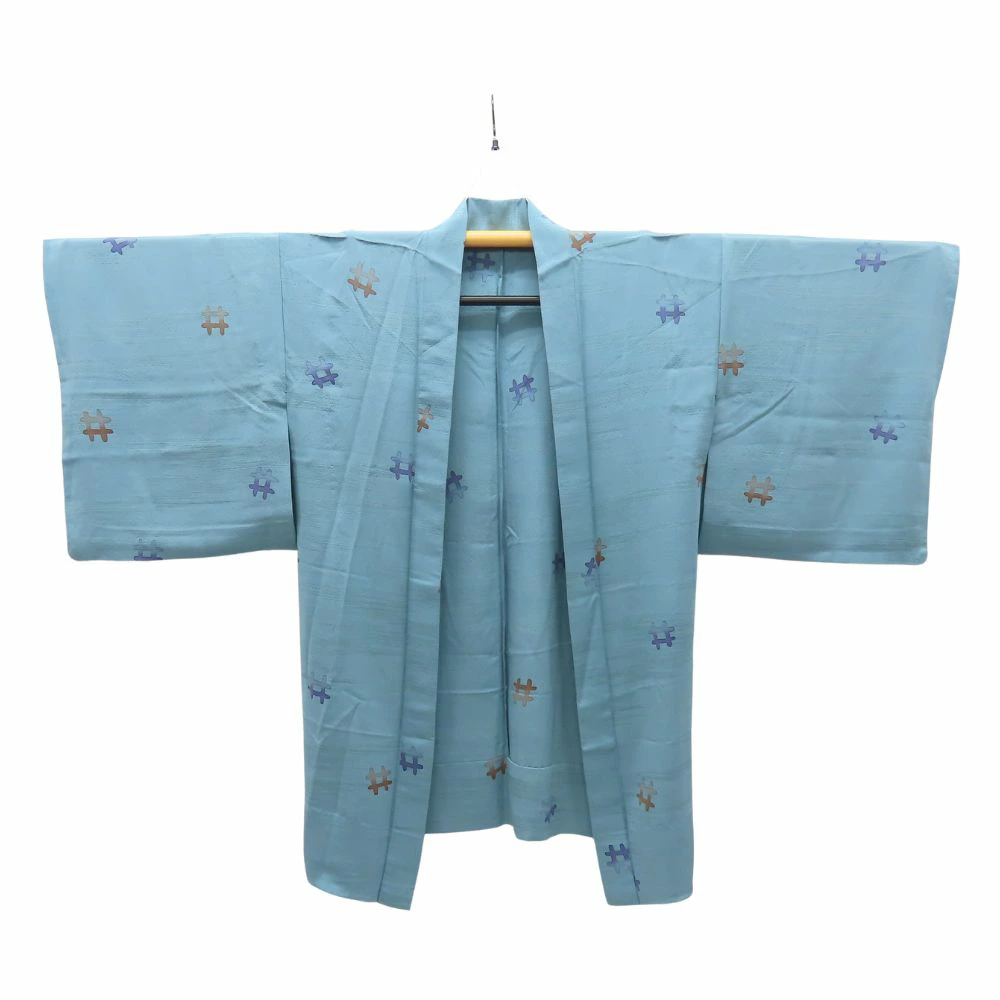 | 品名 | 【中古】 羽織 単衣 正絹(金銀糸除く) ブルーグレー 裏地無し 井桁柄 モダン レディース 女性 |