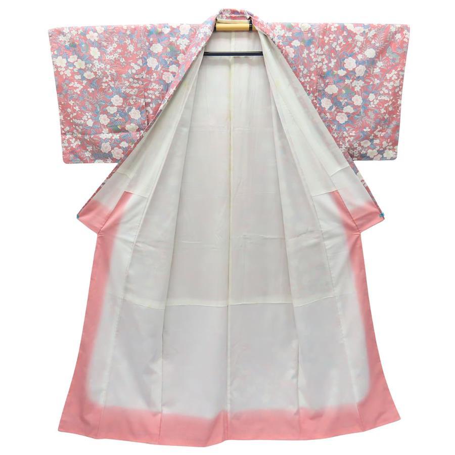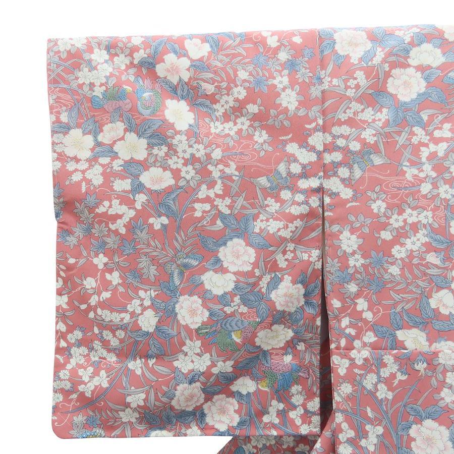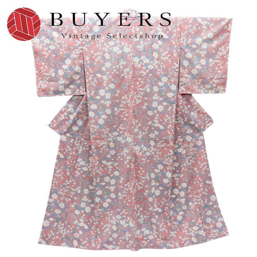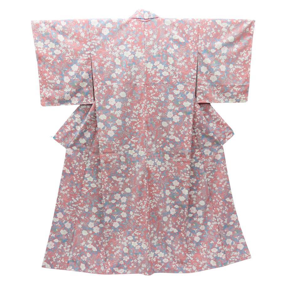 | 品名 | 【中古】 小紋 化学繊維 くすみピンク グレー 白 花 鳥 レディース 女性 |