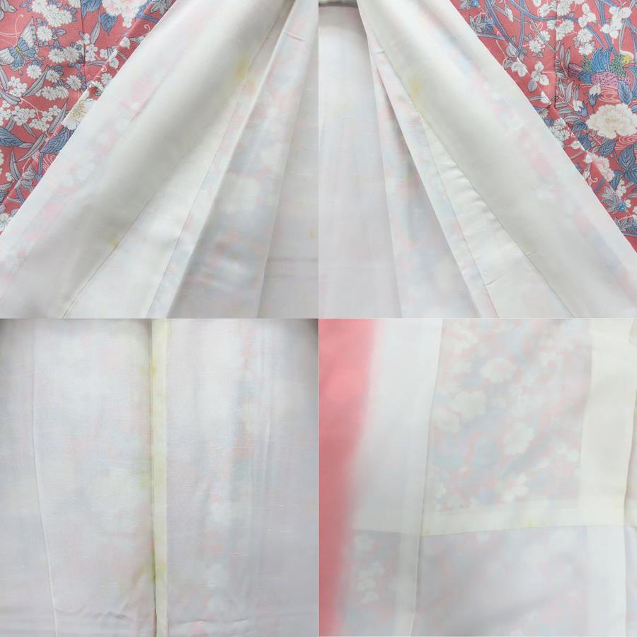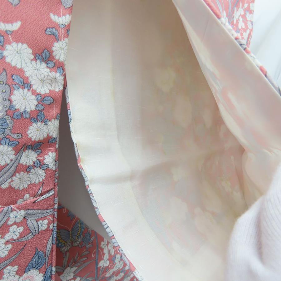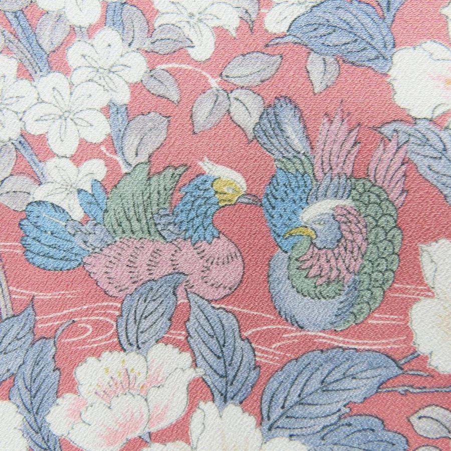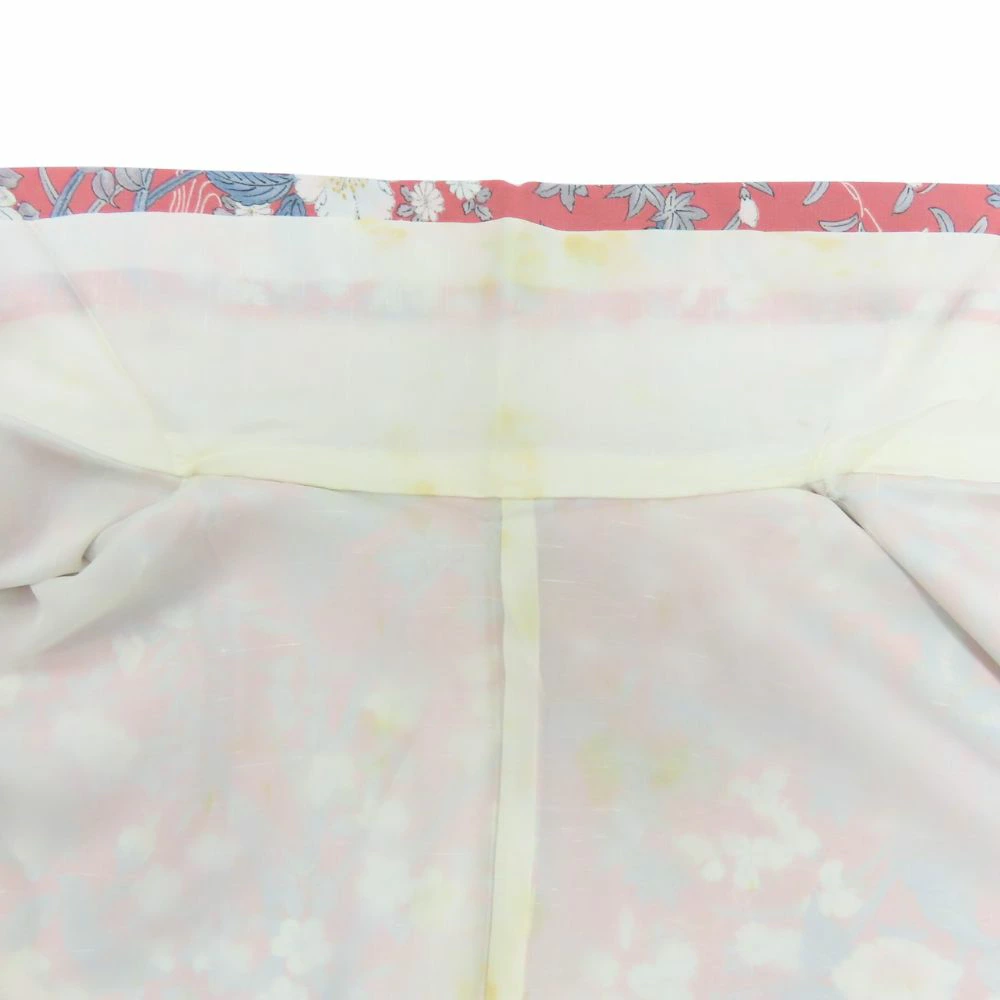 | 品名 | 【中古】 小紋 化学繊維 くすみピンク グレー 白 花 鳥 レディース 女性 |