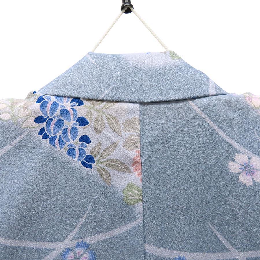 | 品名 | 【中古】 小紋 化学繊維 ブルーグレー系 グレー 花 藤 レディース 女性 |