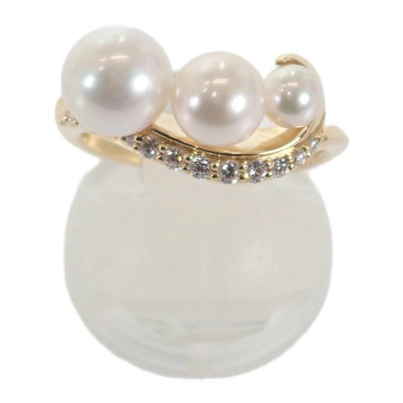 しなやかなゴールドのアームに、異なるサイズのパールがリズミカルに並んだモダンなデザインのアイテム。