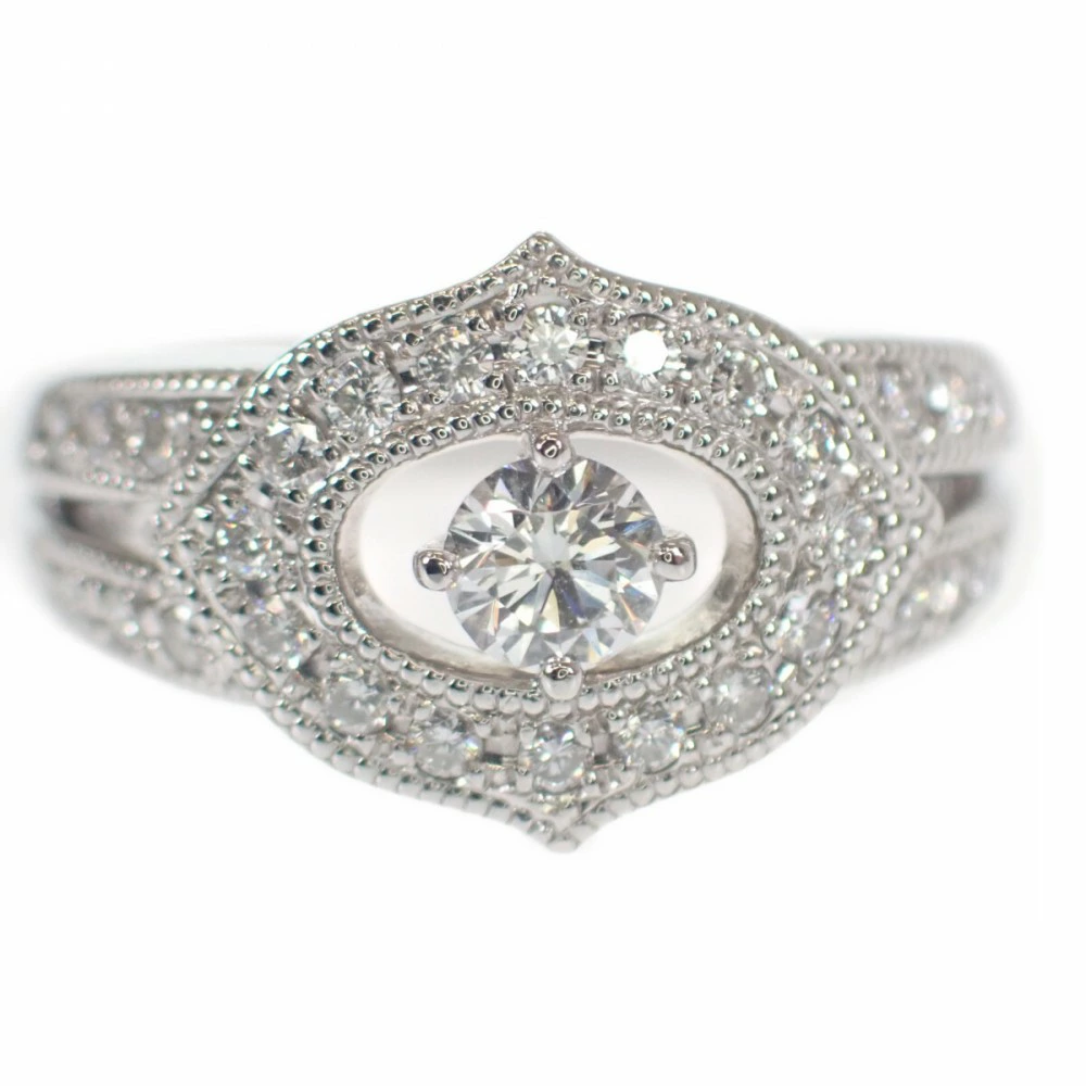 豪華にダイヤモンドがあしらわれ、センターに大きく飾られた一粒のダイヤモンドが美しさをより感じさせてくれます。