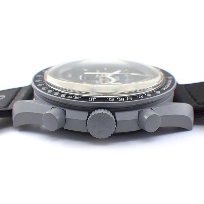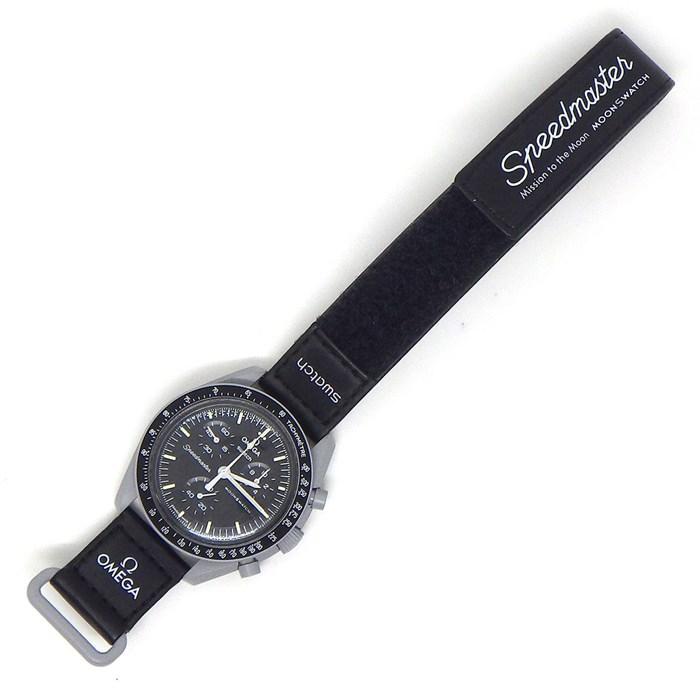 ■商品名スウォッチ×オメガ Swatch×OMEGA 腕時計 スピードマスター ミッショントゥザムーン S033M100 ブラック文字盤 クロノグラフ スチールグレー バイオセラミック ブラック ナイロンベルト クオーツアナログ 【箱・保付き】 【中古】