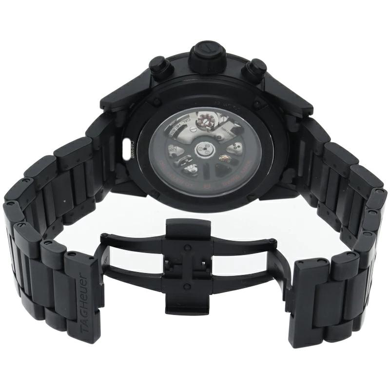 | 「カレラ キャリバーホイヤー01クロノグラフ」から2mmダウンサイジングした43mmケース。タキメーターベゼルには耐傷性に優れたブラックセラミックを採用し、文字盤をスケルトン仕様にすることでスポーティーでメカニックな印象のモデルです。ムーブメントにはブラックコーティングが施されたローターと赤色のコラムホイールが特徴のキャリバー「ホイヤー01」を搭載します。 |