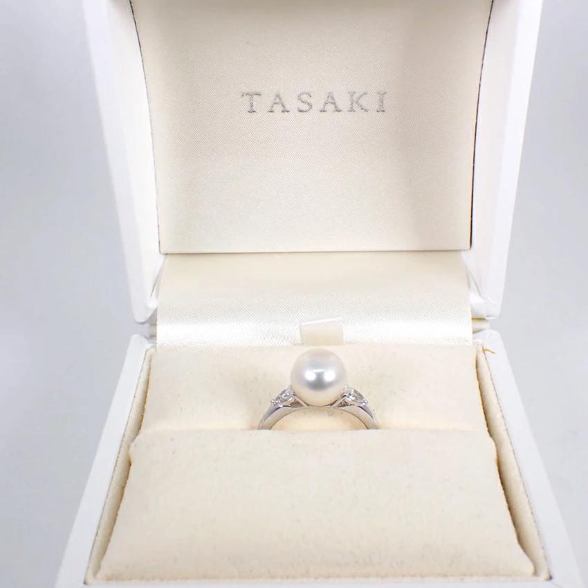 Product DetailsProduct Rank: AMaterial: 750 (18K White Gold)Diamond: 0.22ctWeight: Approximately 3.8gJapanese Size: 12 / International Size: 52 / US Size: 6.5Akoya Pearl: Approximately 8.5mm DiameterAccessories: BoxProduct DetailsTASAKI: This elegant ring features a lustrous white Akoya pearl with a touch of pink and green, set with a high-quality diamond. The "T" on the TASAKI engraving has disappeared.Brand new and polished.Product Rank: [N] New or equivalent, in excellent condition with no defects. [S] Almost flawless and in good condition. [A] Lightly used. [B] Signs of use. [C] Signs of heavy use, obvious damage, or repair. ____________________________Condition: Used