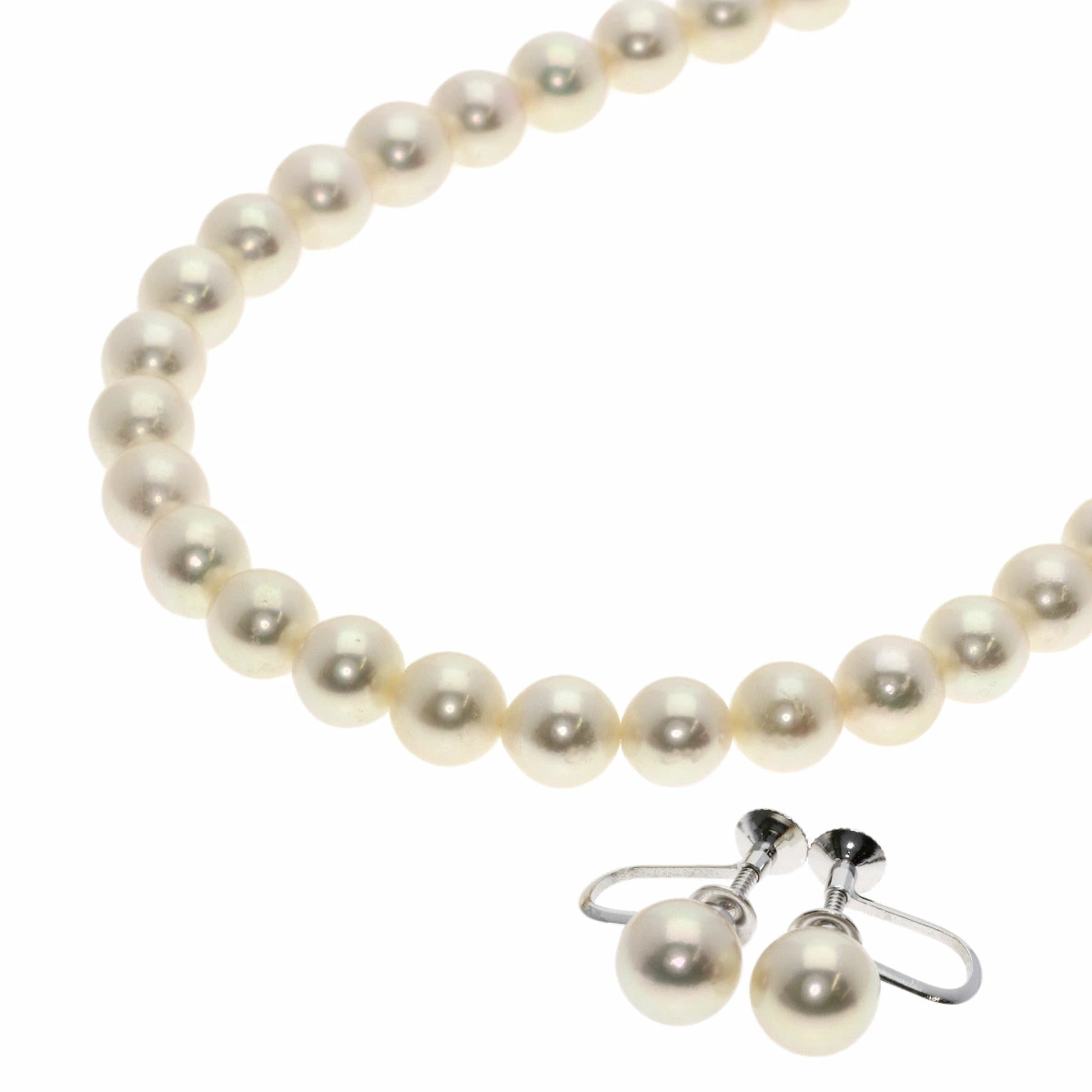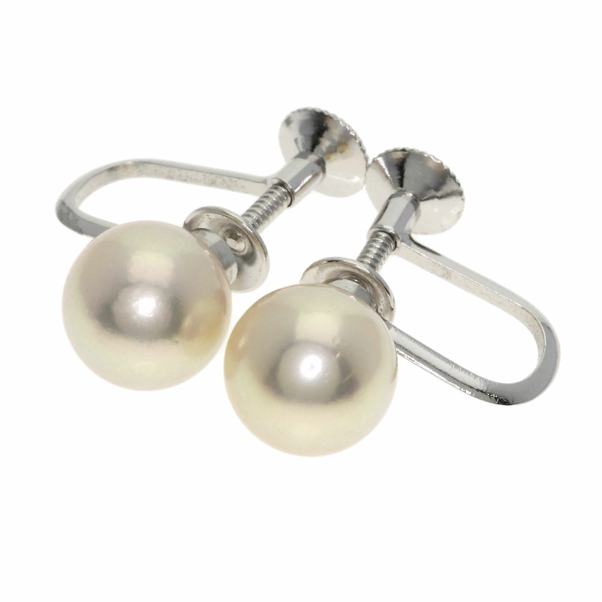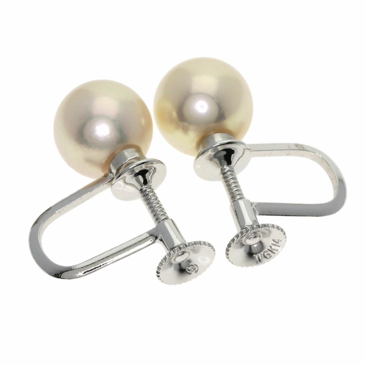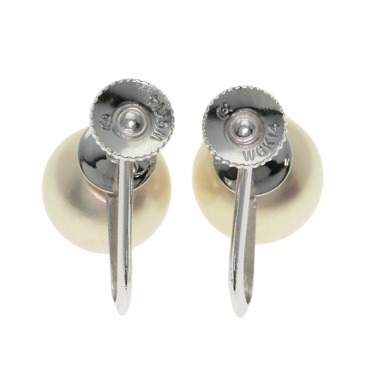 イヤリングのパールサイズは約8.0mm、金具はK14WG素材です。付属の外箱は破損していて内箱に少し汚れがございます。