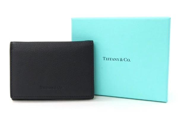 Pre-owned Tiffany & Co. business card holder, black leather, card case, pass case, logo, for men, business, TIFFANY & CO.