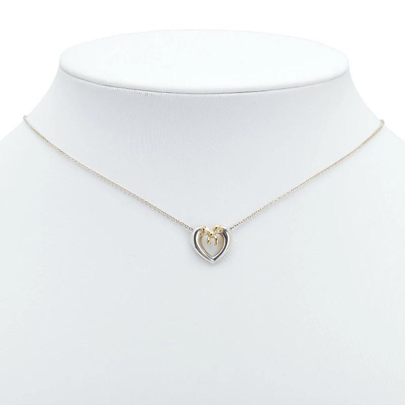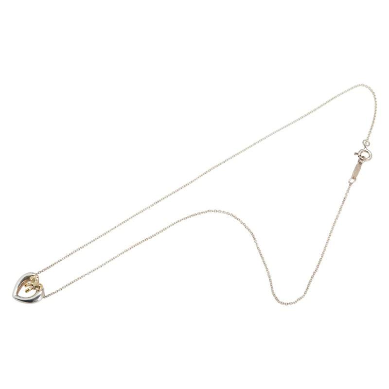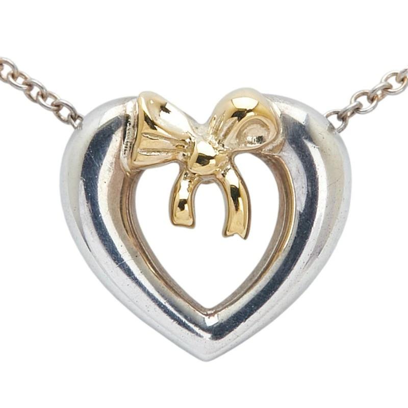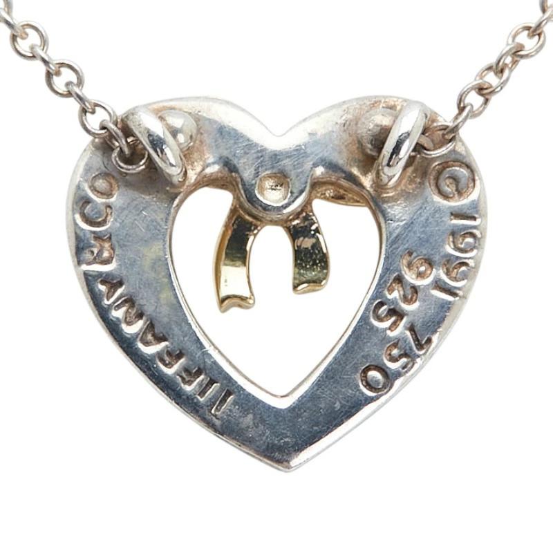 Pre-owned Tiffany & Co. Heart Ribbon Motif Necklace in Silver and Gold, SV925 and 18K Gold. Women's.