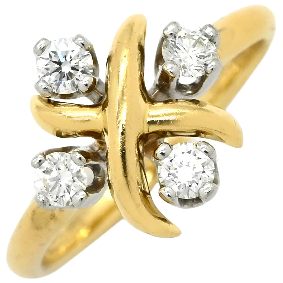 ティファニー Tiffany & Co リング 指輪 ジャン シュランバージェ K18YG Pt950 ダイヤモンド イエローゴールドXプラチナシルバー 4Pダイヤ 750 - 5号 レディース 【中古】