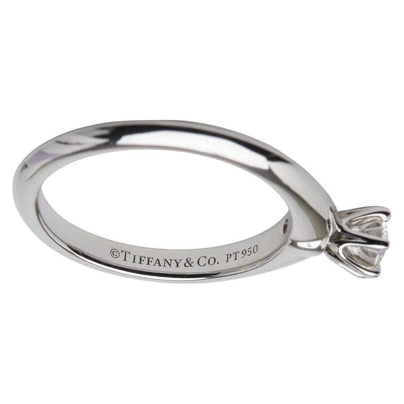 Pre-owned Tiffany & Co. Pt950 Platinum Diamond D0.18 Solitaire Ring, Women's, Size 5.