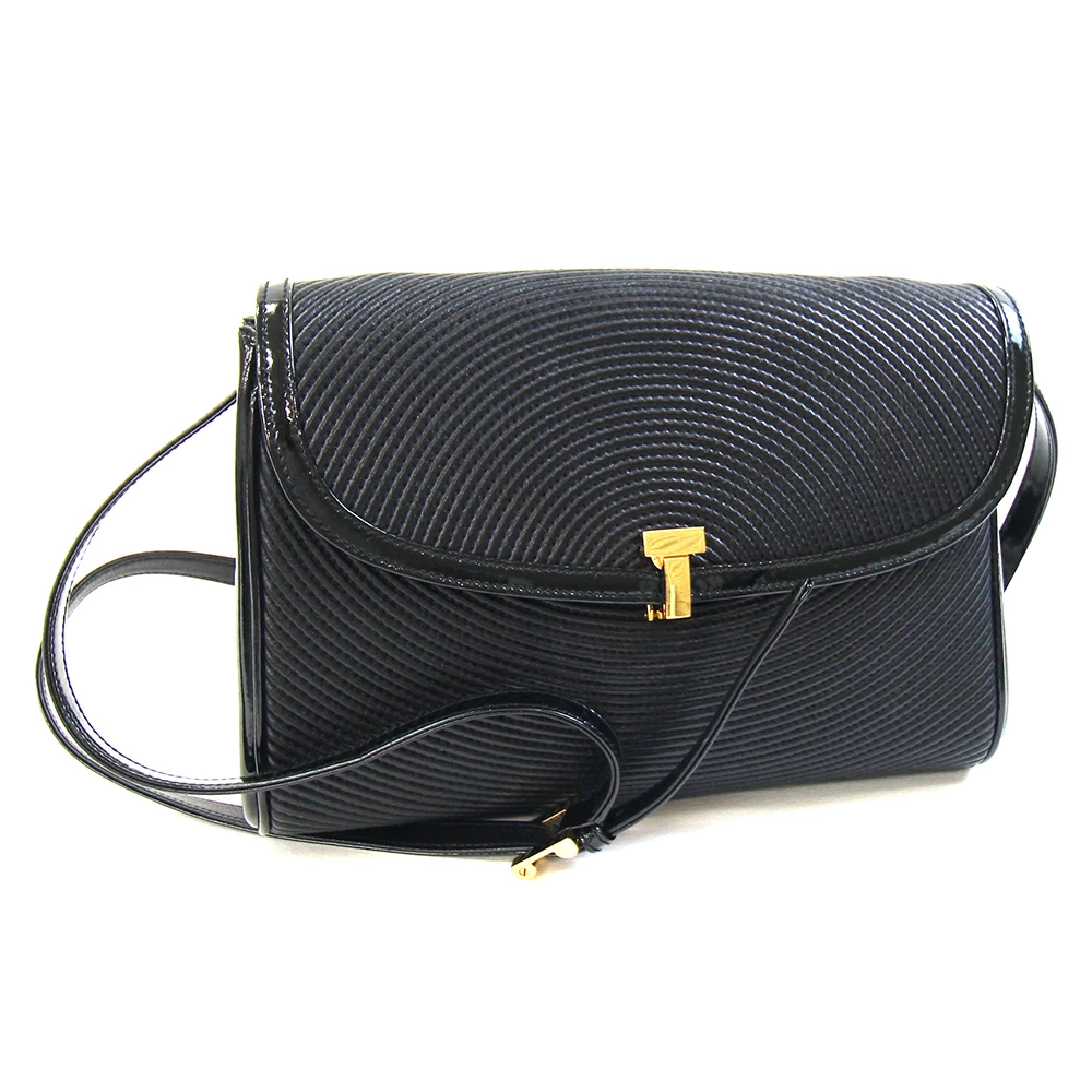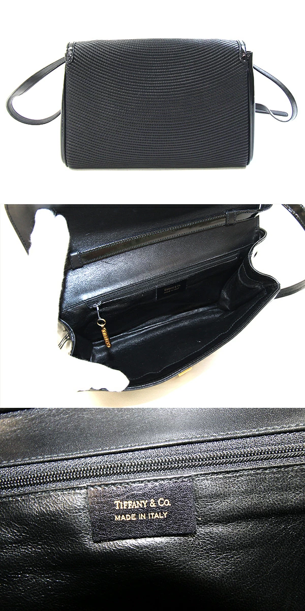 Pre-owned Tiffany & Co. shoulder bag in black leather and enamel with a quilted T-clip. A rare, classic TIFFANY & CO. crossbody bag.