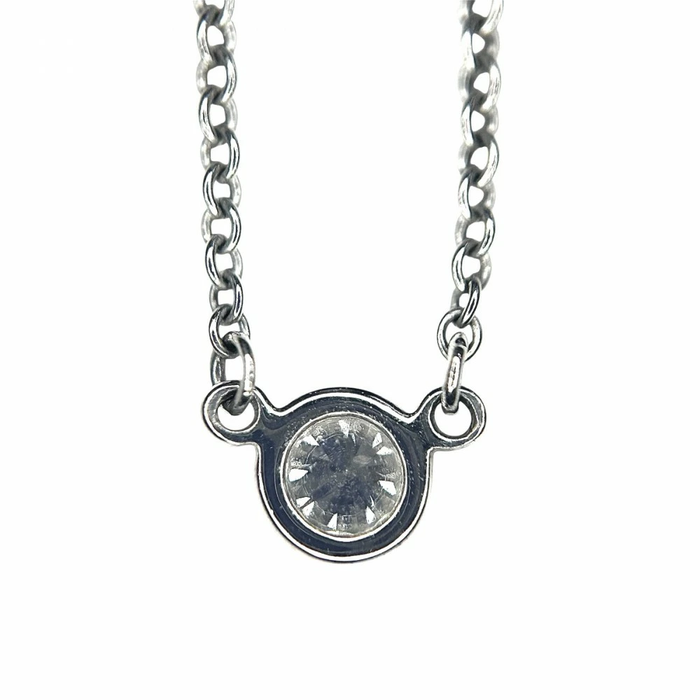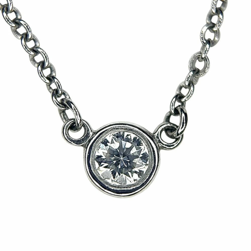 Pre-owned Tiffany & Co. Women's By the Yard Single Diamond Pendant Necklace in Platinum (Pt950) with a 0.08ct Diamond (Approximately 2.3g).