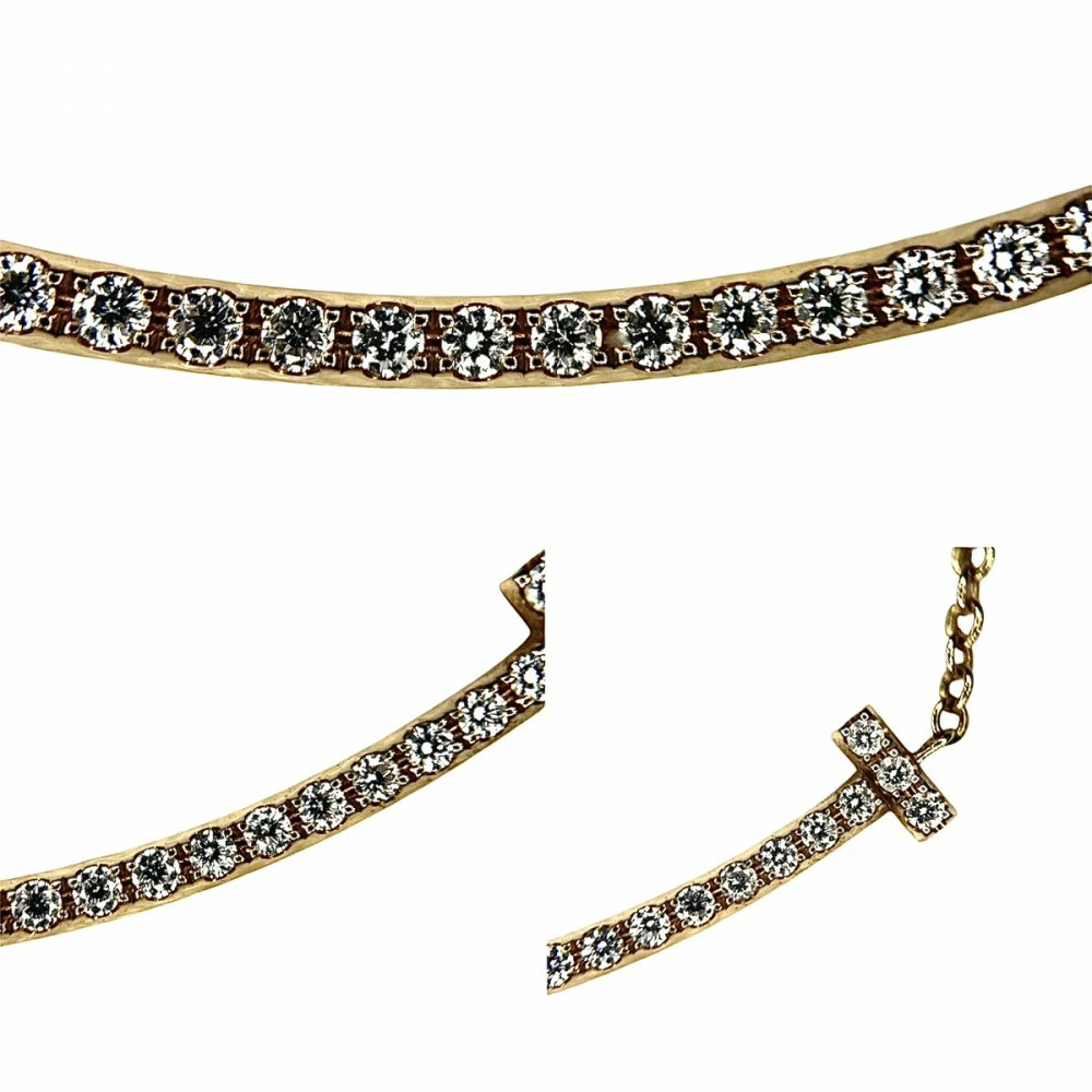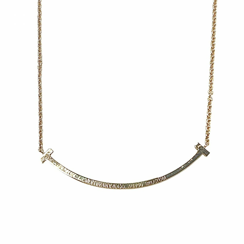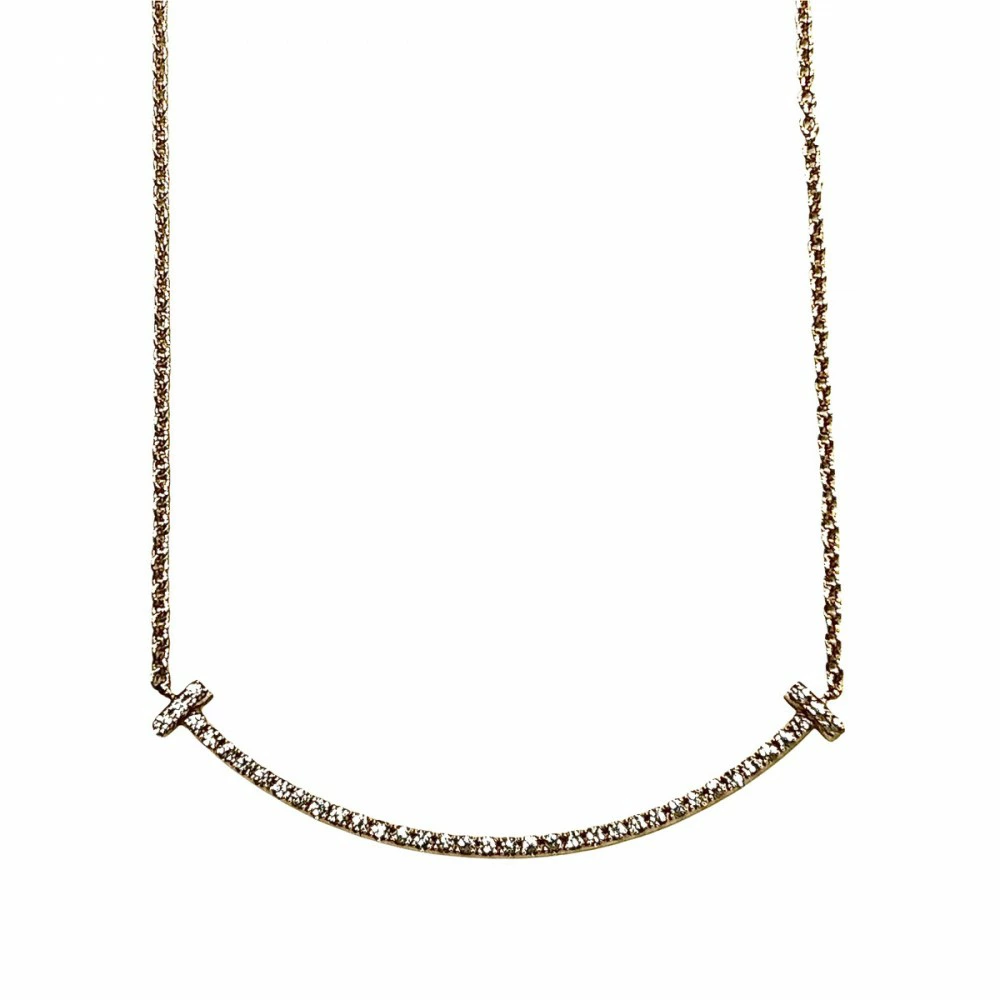 Pre-owned Tiffany & Co. Women's Tiffany T Smile Pendant Small Jewelry Accessory in 18K Pink Gold (PG 750) with Diamonds, Approximately 2.2g. Excellent Condition.