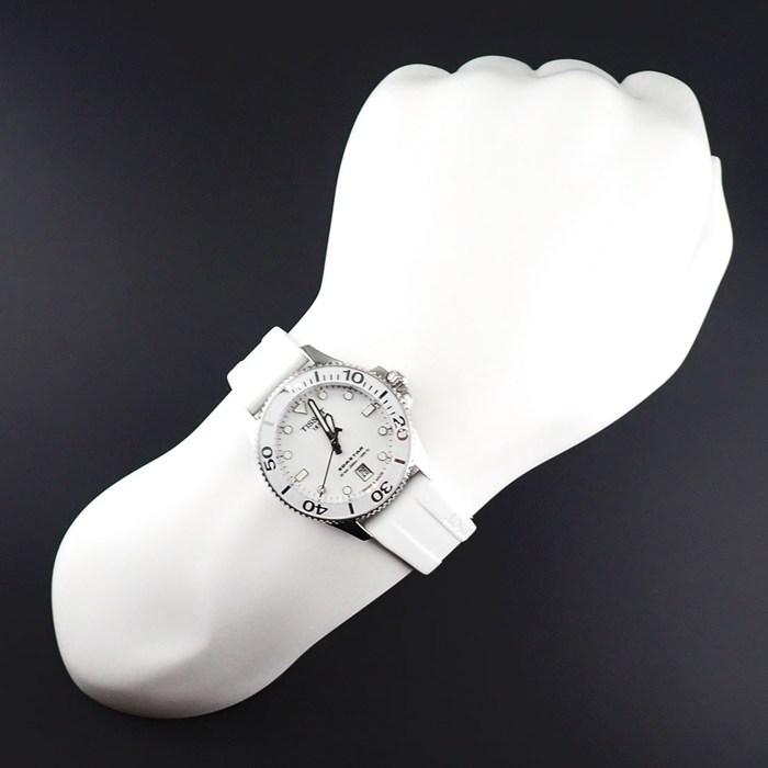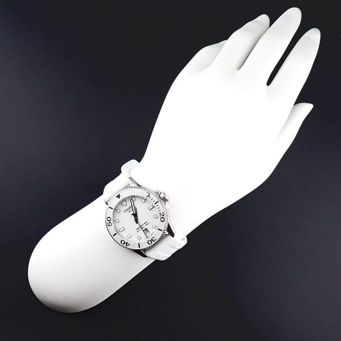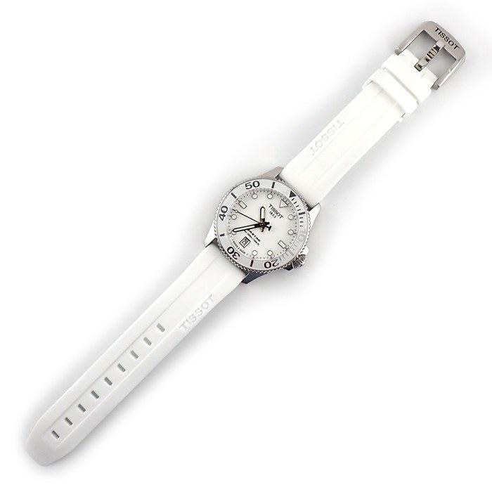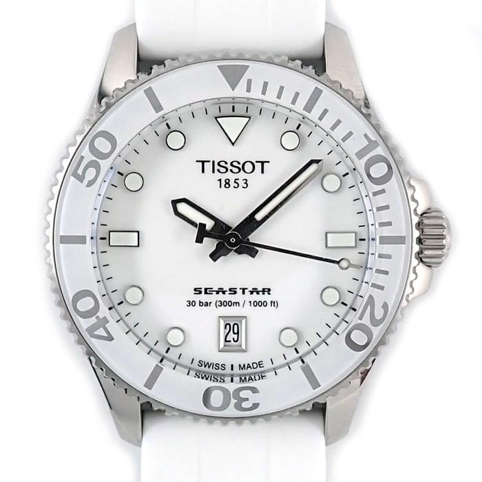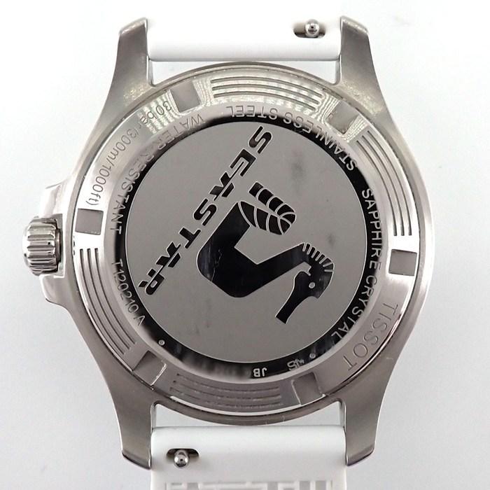 ■商品名ティソ TISSOT 腕時計 シースター T120.210.11.011.00 ホワイト文字盤 デイト 夜光針・インデックス 回転ベゼル ラバーベルト SS クオーツアナログ 【箱・保付き】 【中古】