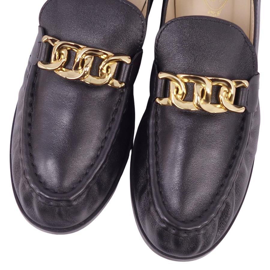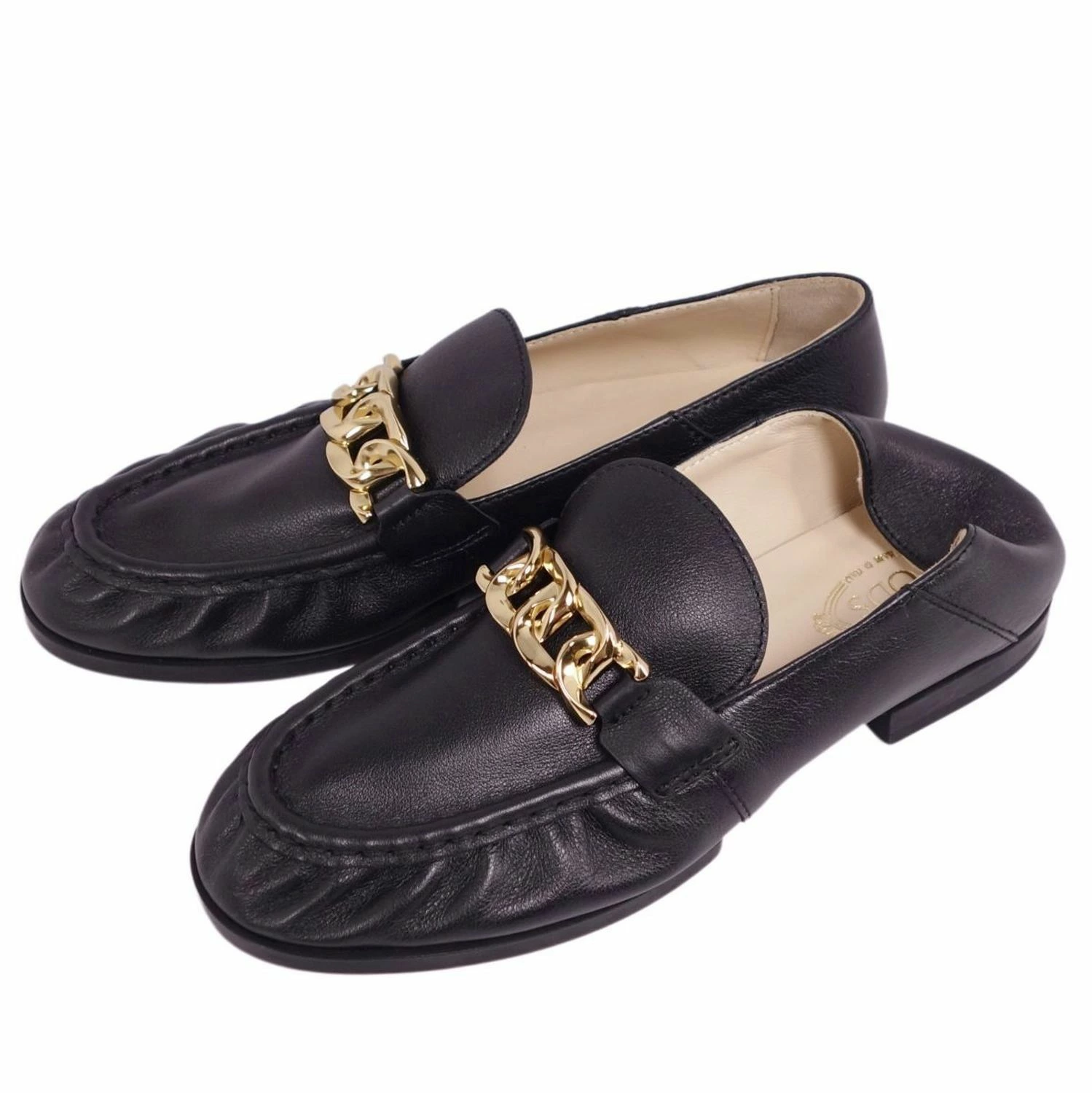 ■商品名トッズ TOD'S ローファー モカシン バブーシュ チェーン金具 レザー シューズ 靴 レディース ブラック サイズ36(23cm相当)■状態説明・しなやかで上質なレザーを贅沢に使用したTOD'Sのバブーシュ(ローファー)です♪・シックなカラーリングにゴールドチェーン金具が目を引く一足です◎・イタリア製・USEDですが気になるようなキズや汚れなどはなく全体的にキレイな状態です!【季節感:オールシーズン】【付属品:箱/保存袋/冊子類】■素材レザー■カラーブラック■表記サイズ36(23cm相当)■実寸サイズアウトソール:約25cm幅:約8.5cm■状態ランクA 使用感の少ない全体的にキレイなUSED品■店舗管理番号ce10dt-rm07f13673womens_black