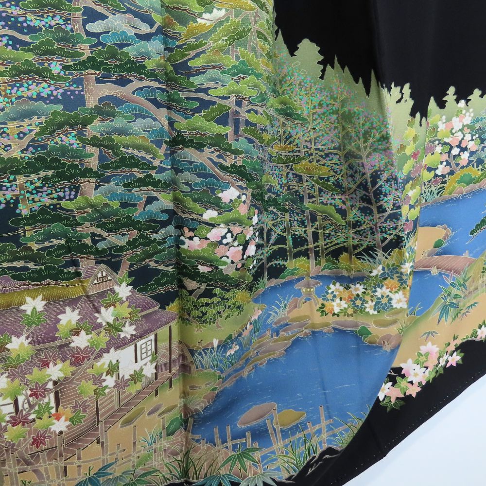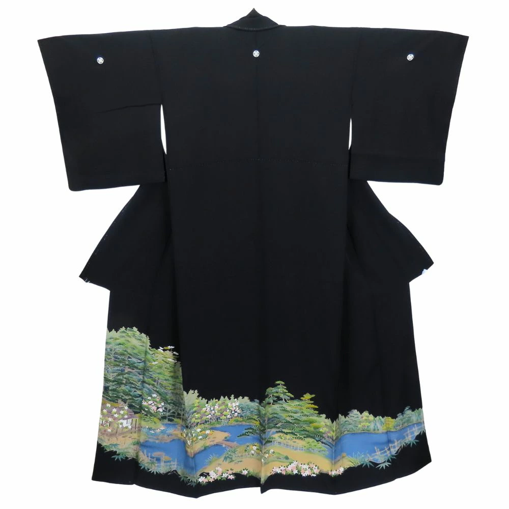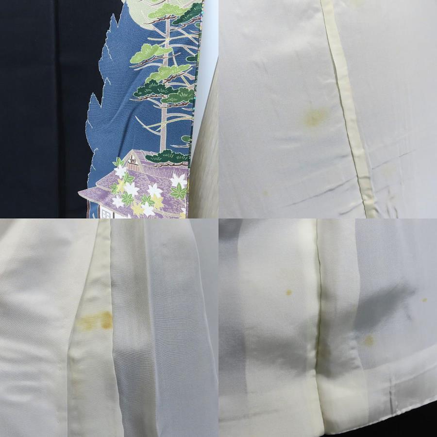 | サイズ | サイズ 袖丈:約 47.5cm 裄丈:約 68cm 肩身丈:167cm 前幅:26cm 後幅:30cm 図柄:屋敷庭園 重量:約1100g |