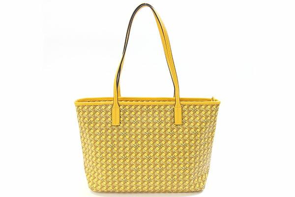 トリーバーチトートバッグバスケットウィーブ147748イエローコーティングキャンバスレザー中古ショルダー肩掛けロゴレディースTORYBURCH
