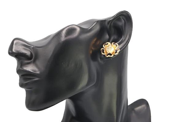 Pre-owned Tory Burch earrings in gold metal with crystal pearls and a flower logo. Women's.