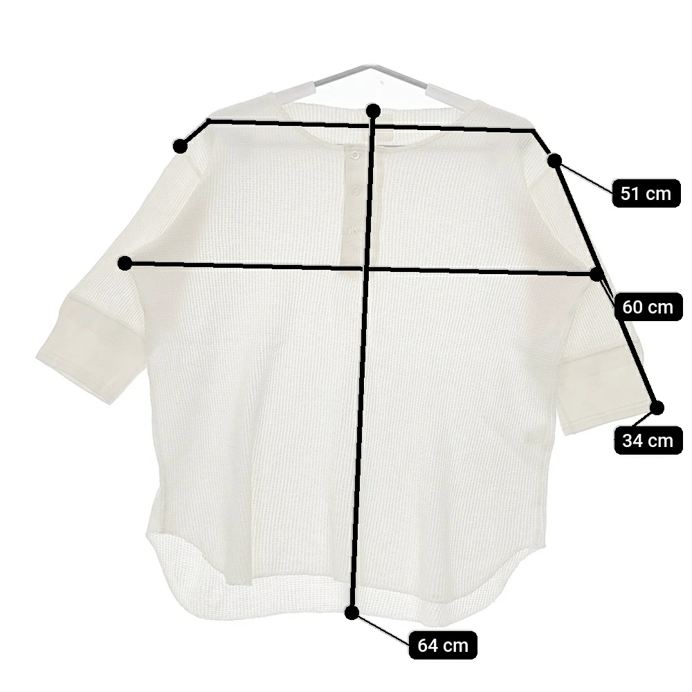 | 実寸サイズ | 肩幅:約51cm 着丈:約64cm 身幅:約60cm 袖丈:約34cm ※記載以外のサイズが合わないことを理由とした返品はできませんので、 記載部分以外で実寸サイズの気になる箇所があれば必ず購入前にご質問ください。 |