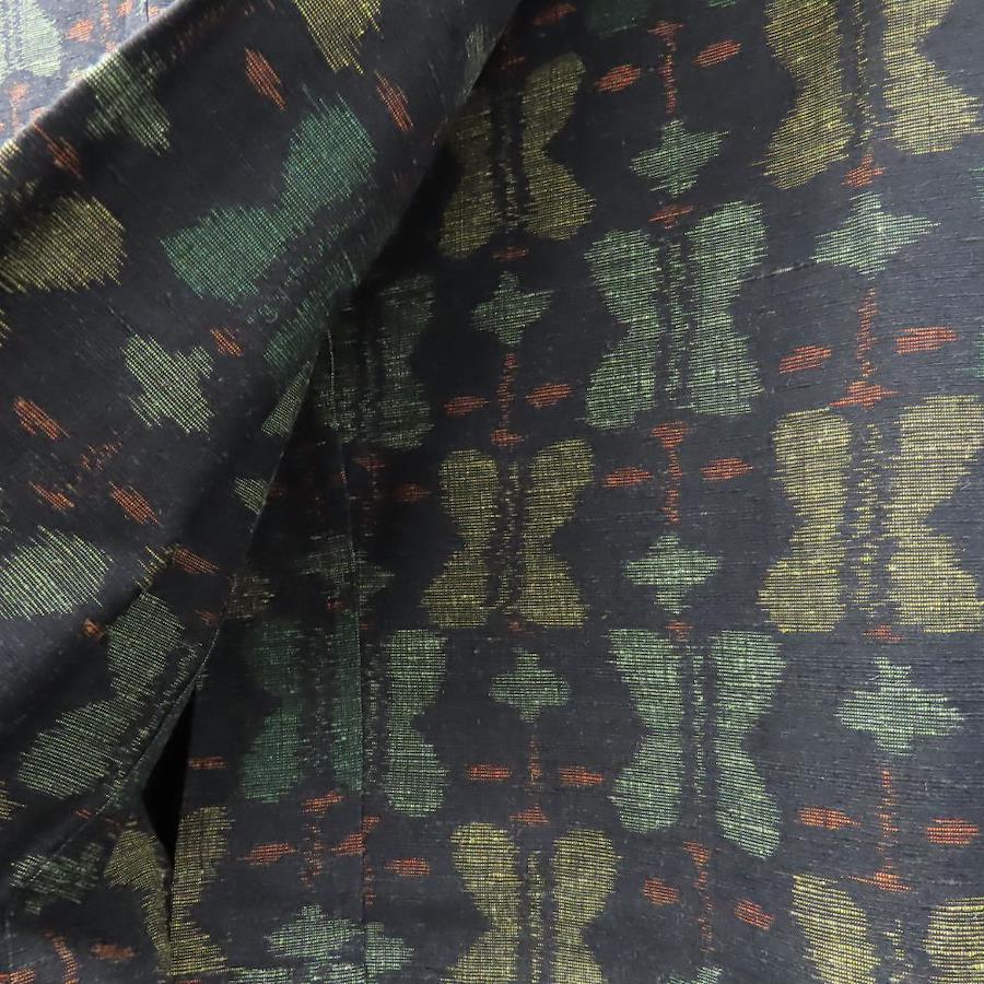 | 品名 | 【中古】 紬 正絹 ブラック グリーン系 マルチカラー 洒落 単衣 総柄 レディース 女性 |