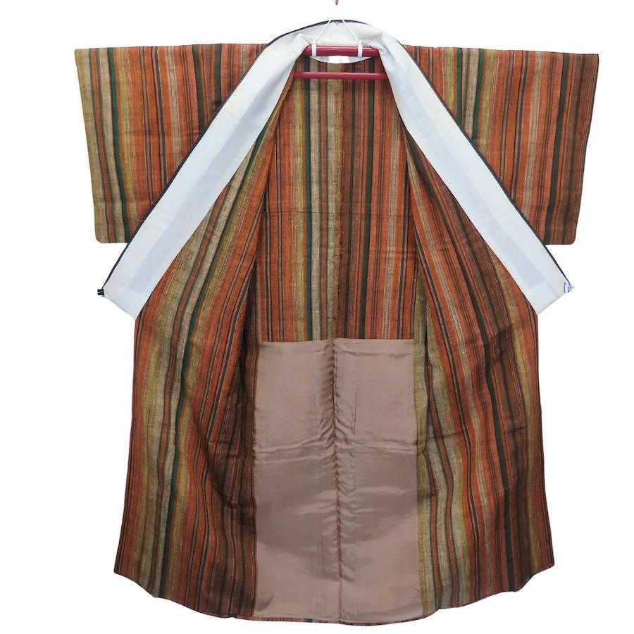 | 品名 | 【中古】 紬 正絹 ブラウン オレンジ マルチカラー 単衣 洒落 レディース 女性 |
