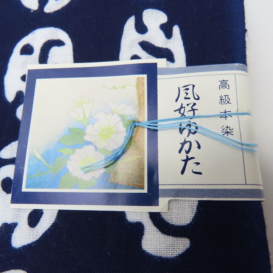 [Pre-owned] Unused display item, cotton yukata fabric, navy and white, chusen dyed, high-quality authentic dyed kimono, suitable for women.