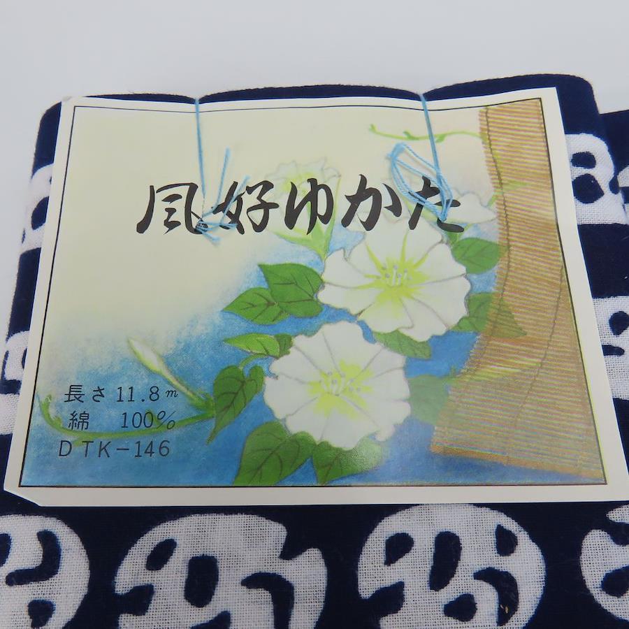 品名【中古】 反物 浴衣 綿 ネイビー系 ホワイト 注染ゆかた 高級本染 レディース 女性