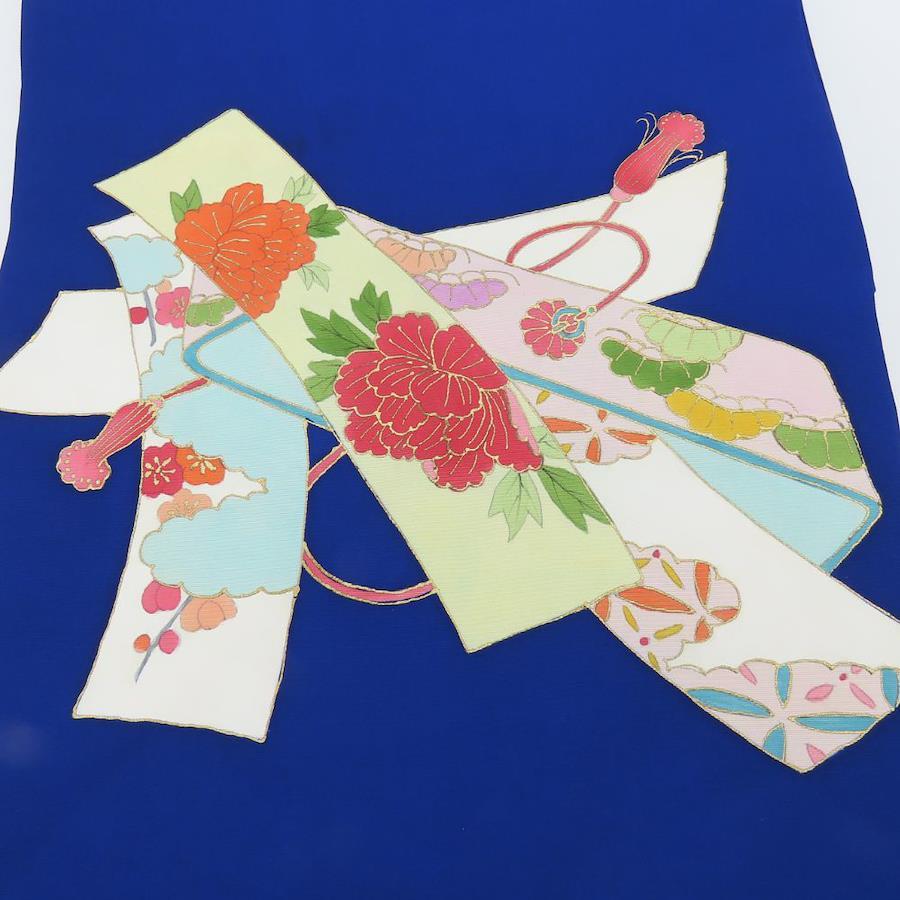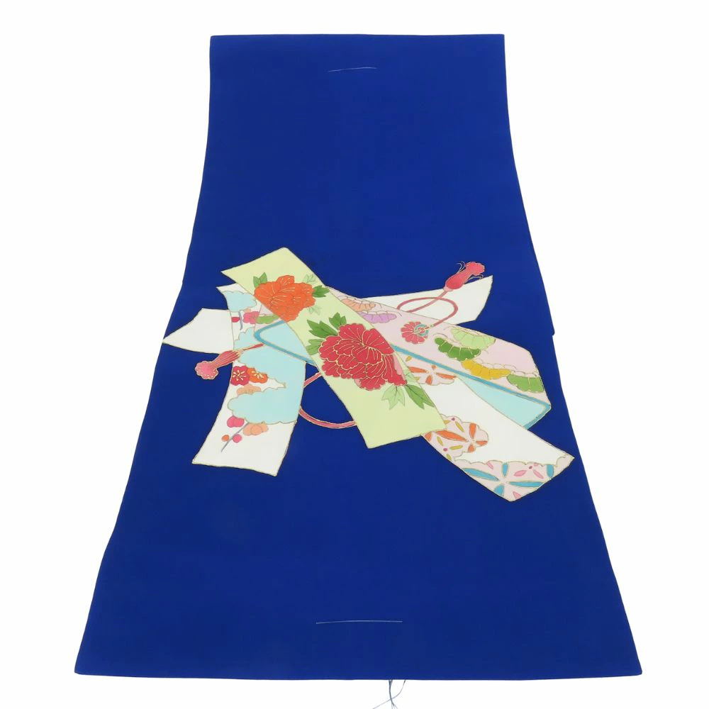 | 品名 | 【中古】 名古屋帯 塩瀬 しつけ糸あり 九寸 正絹(金銀糸除く) ブルー マルチカラー 名古屋仕立て お洒落 手描き レディース 女性 |