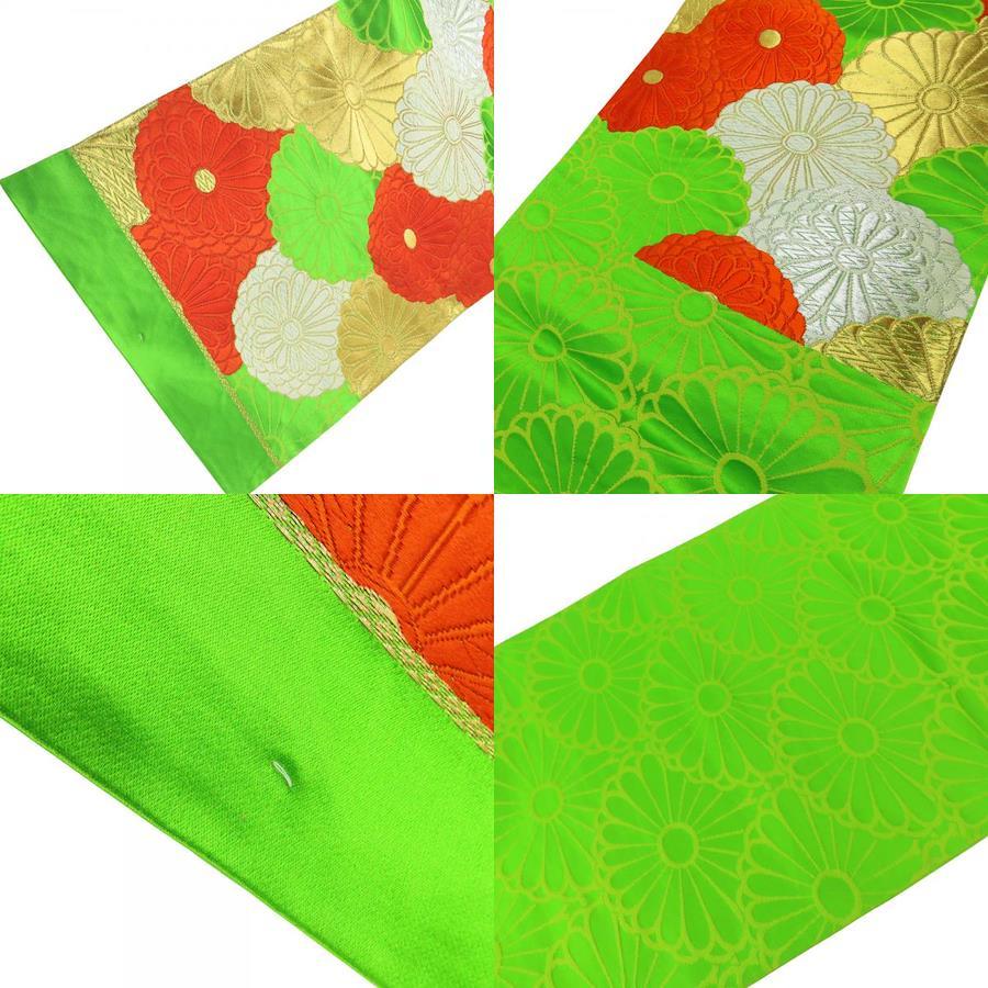 | 品名 | 【中古】 袋帯 西陣織 正絹(金銀糸除く) 金銀糸 グリーン オレンジ ゴールド ホワイト 丸菊 振袖 リバーシブル レディース 女性 |