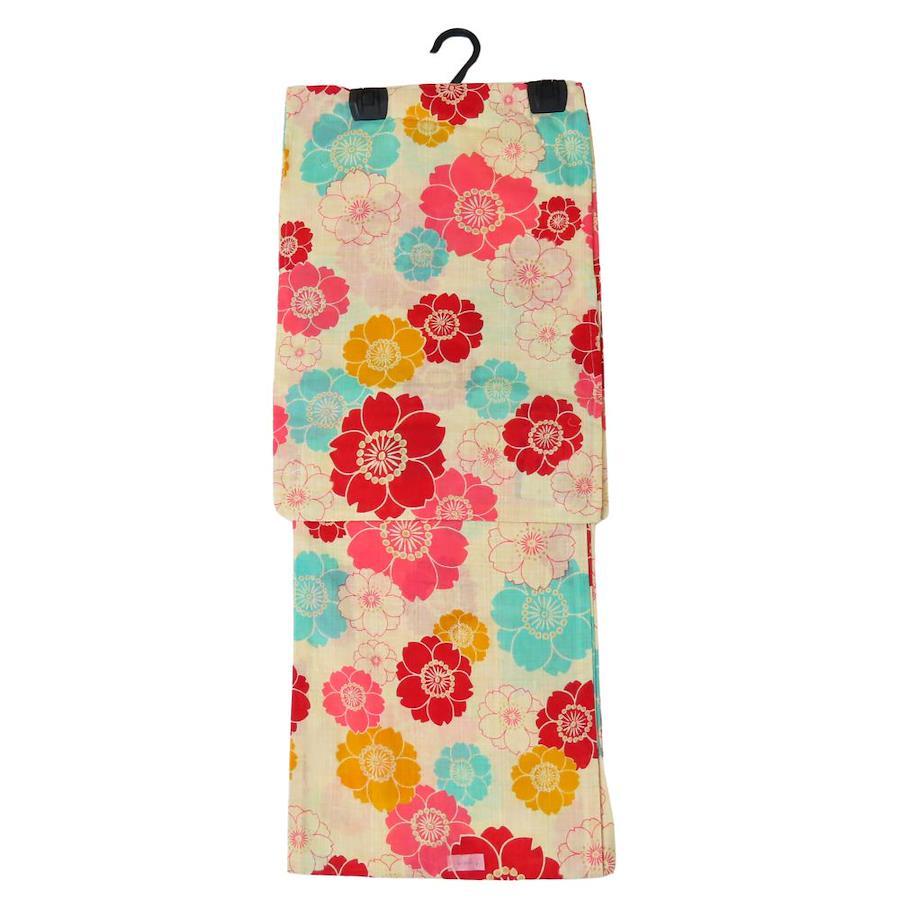 品名【中古】 浴衣 綿 麻 ベージュ系 ピンク マルチカラー さくら モダン 可愛い レディース 女性