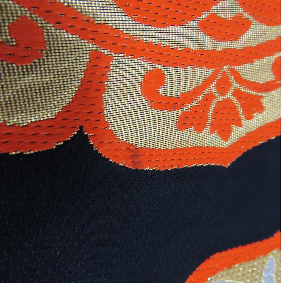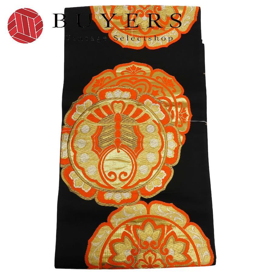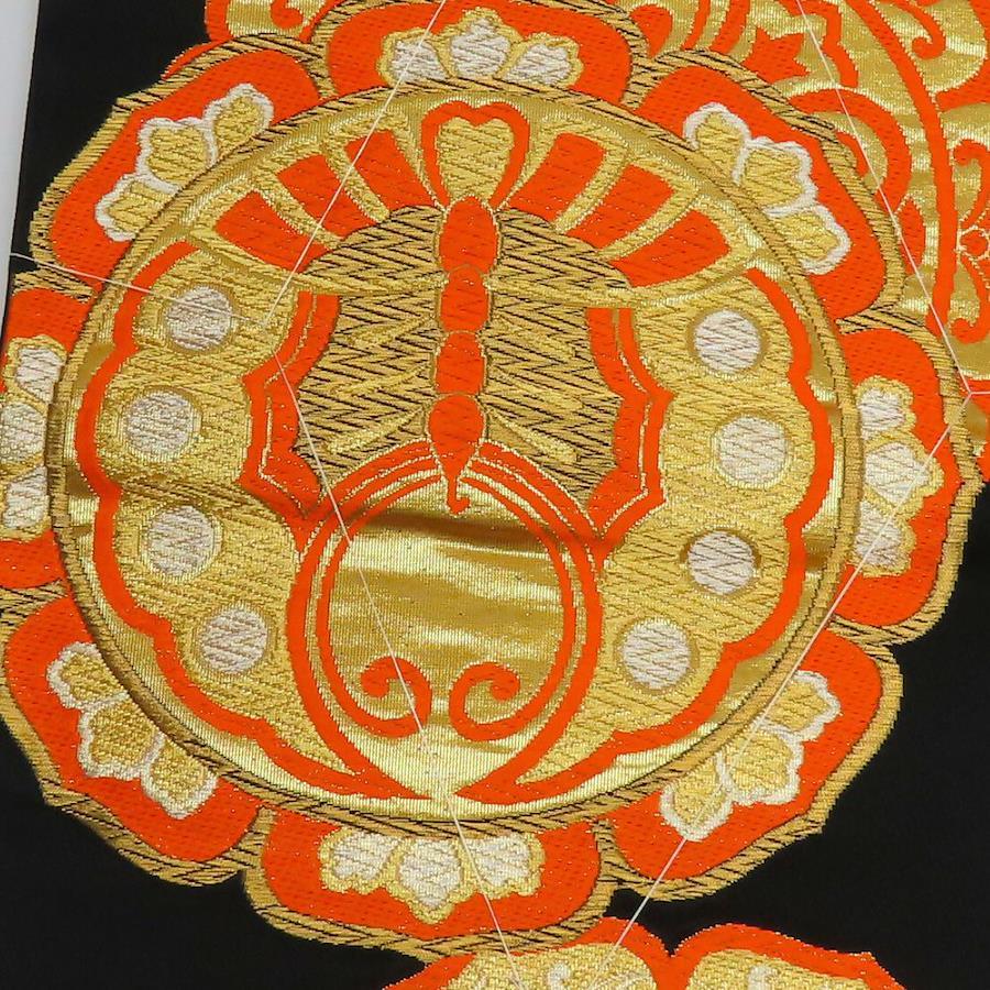 | 品名 | 【中古】 袋帯 しつけ糸あり 正絹(金銀糸除く) ブラック オレンジ ゴールド 振袖 六通柄 レディース 女性 |