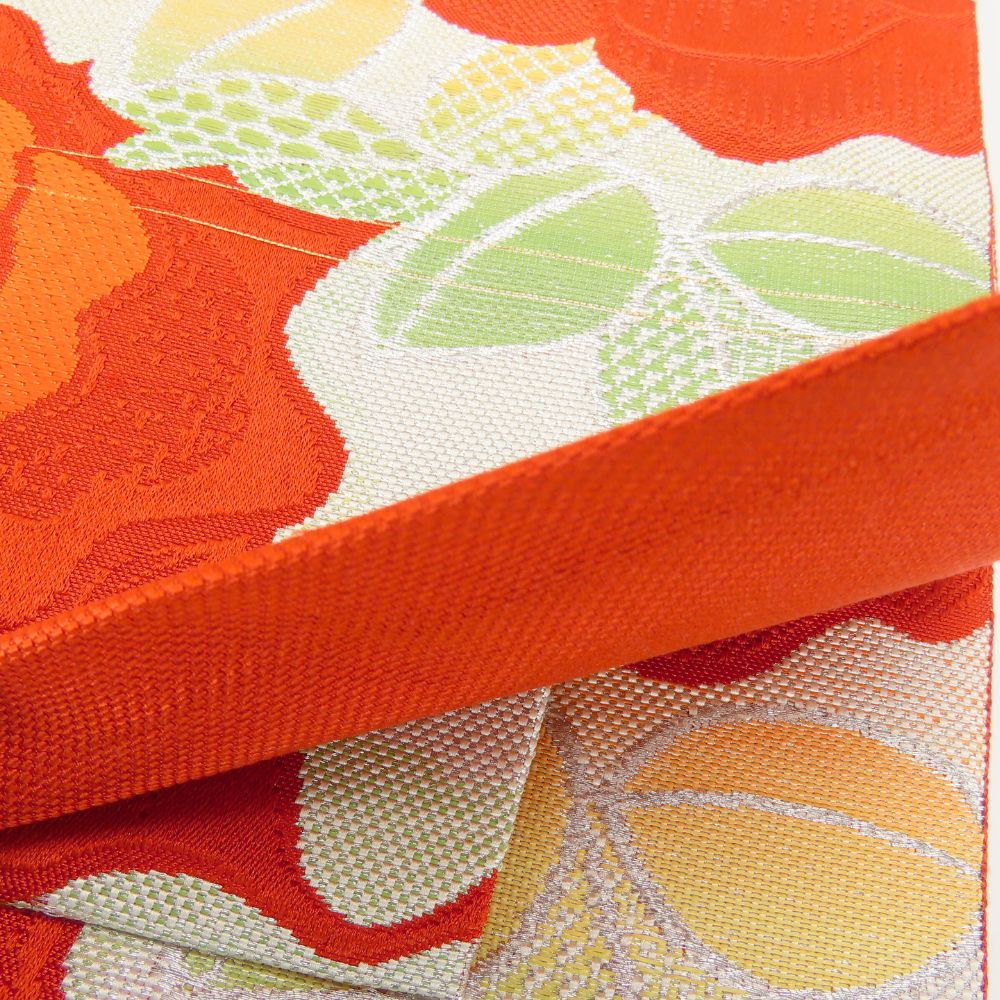| 品名 | 【中古】 名古屋帯 しつけ糸あり 正絹(金銀糸除く) ホワイト レッド 薔薇柄 お洒落 名古屋仕立て レディース 女性 |