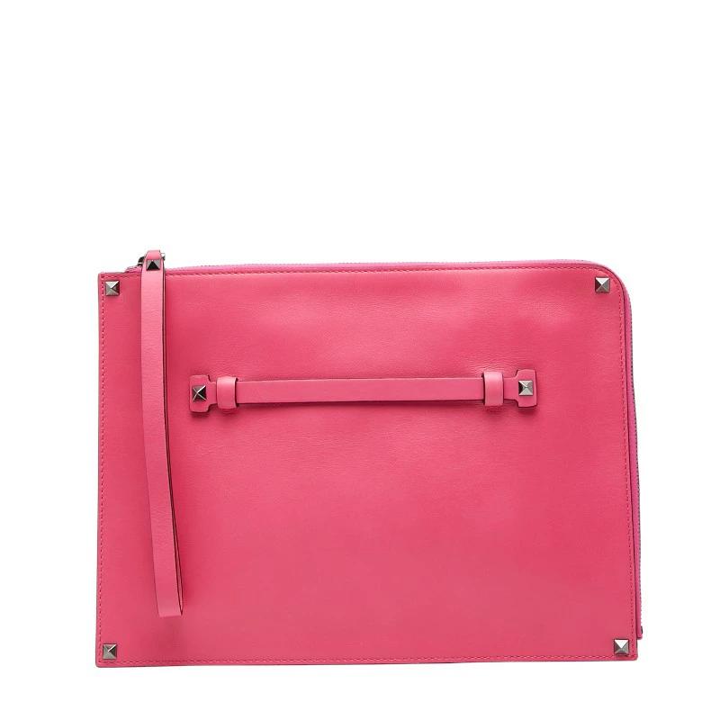 - ヴァレンティノ ロックスタッズ クラッチバッグ ピンク レザー レディース VALENTINO 【中古】