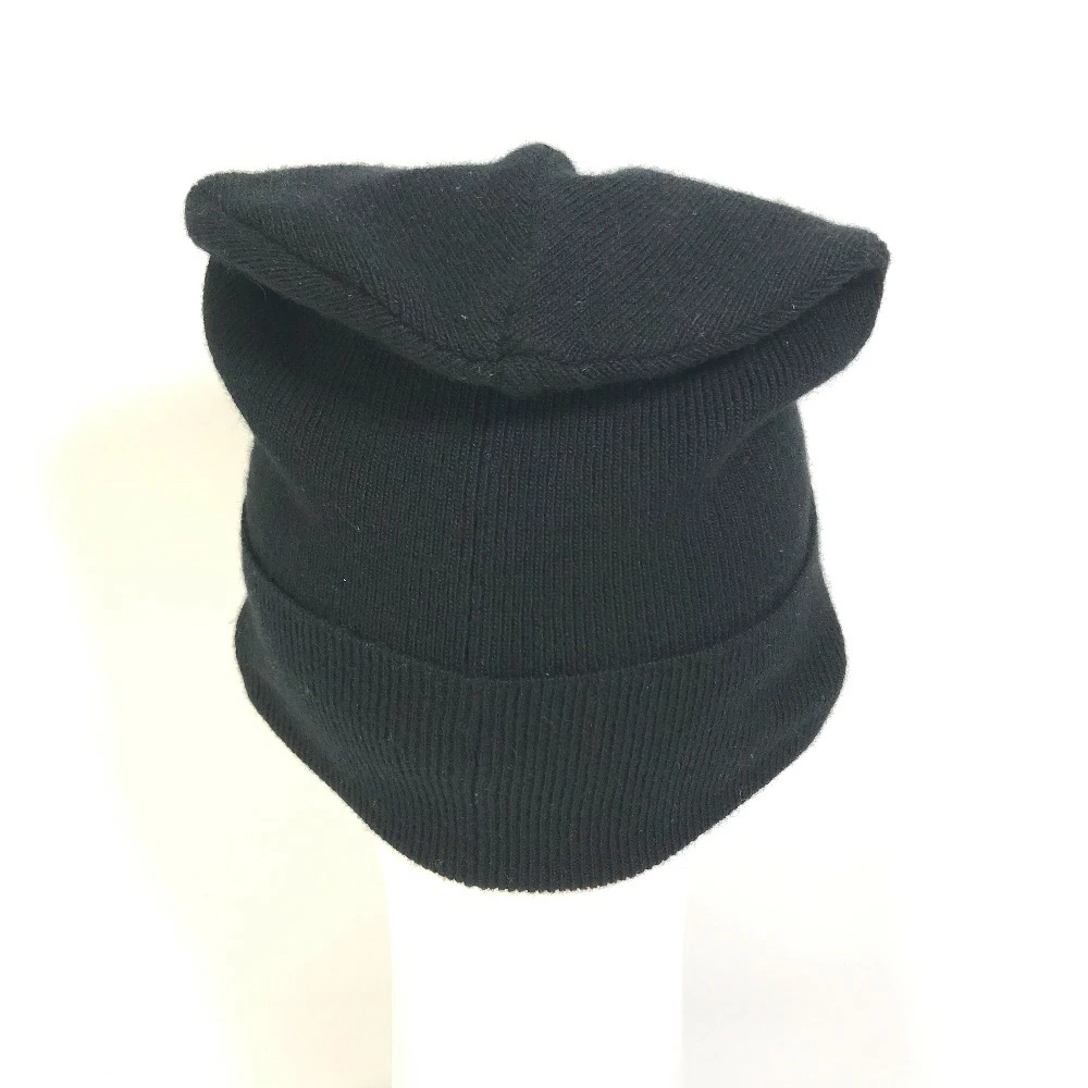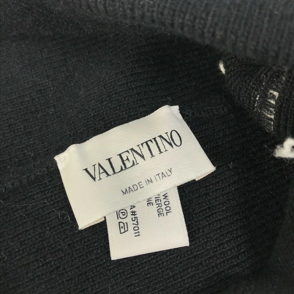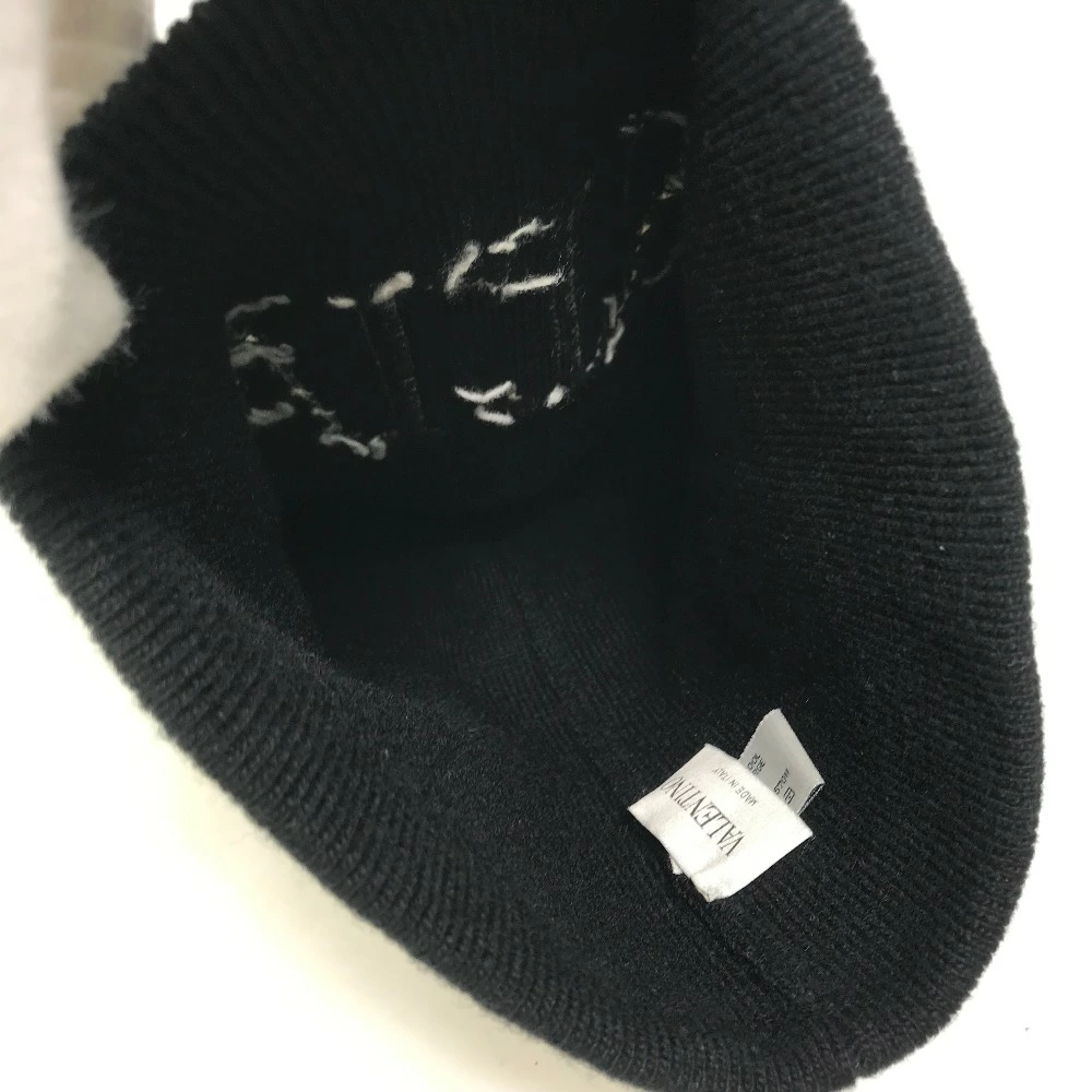 Pre-owned VALENTINO VLTN logo beanie hat, knit cap, wool/silk knit cap, men's black.