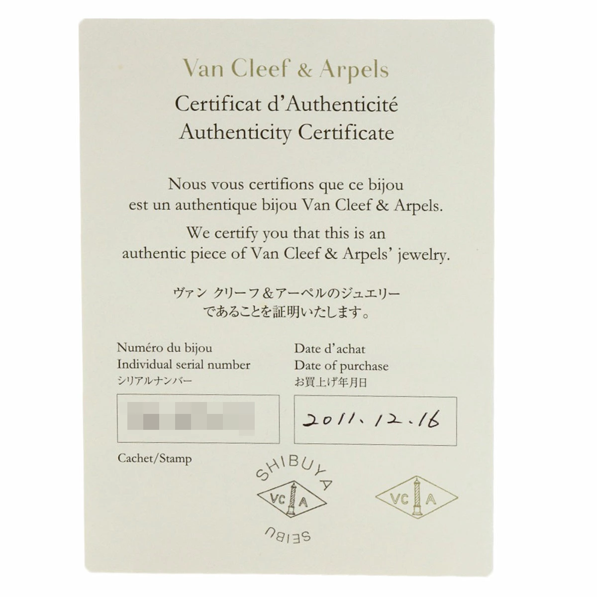 | 付属品 | ヴァンクリーフ保証書・内箱 |