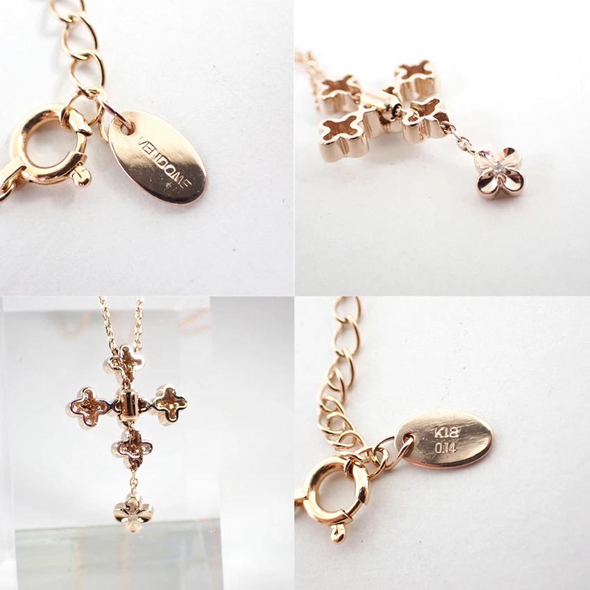[Pre-owned] VENDOME K18PG Diamond Cross Pendant / j66-6