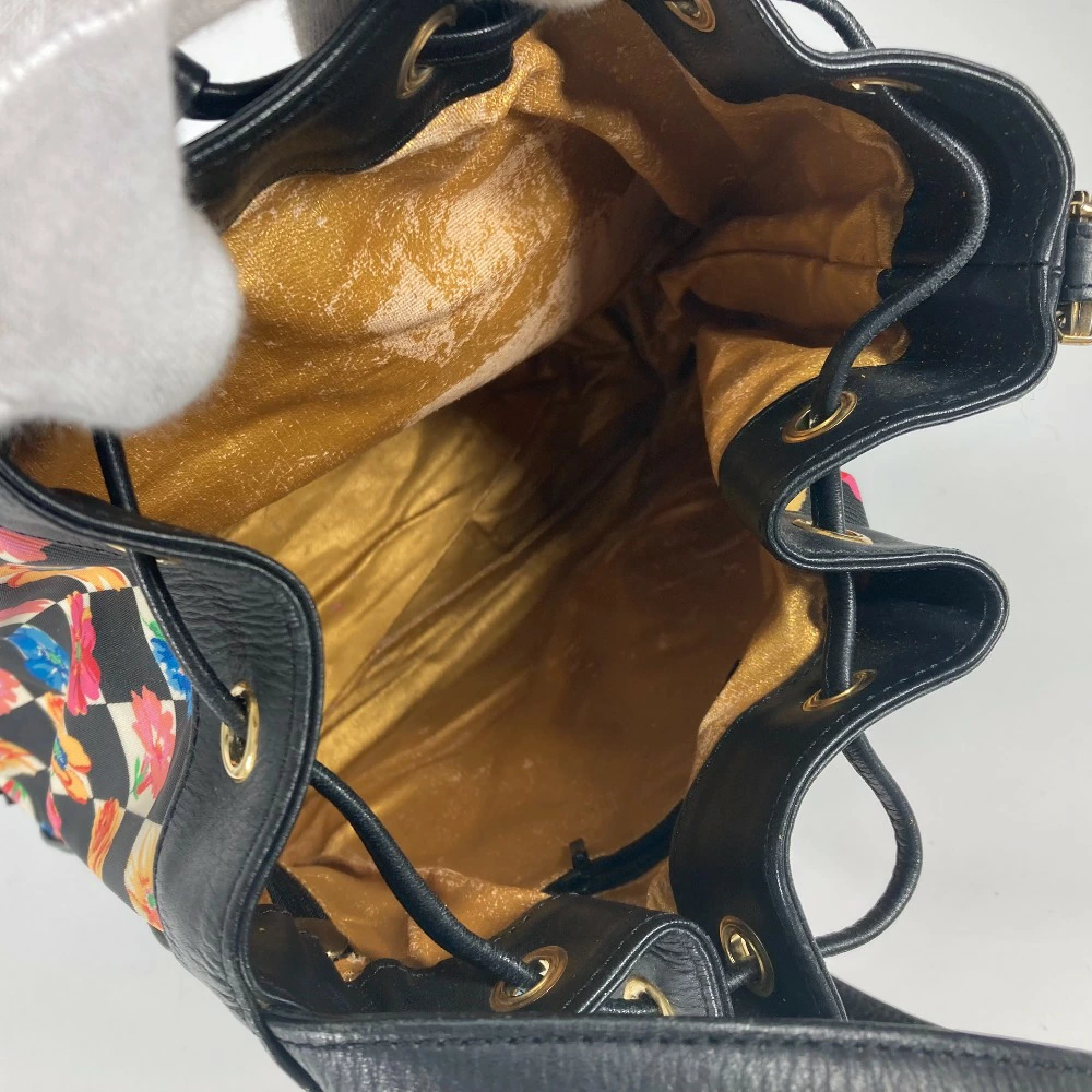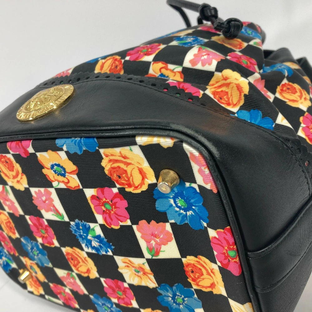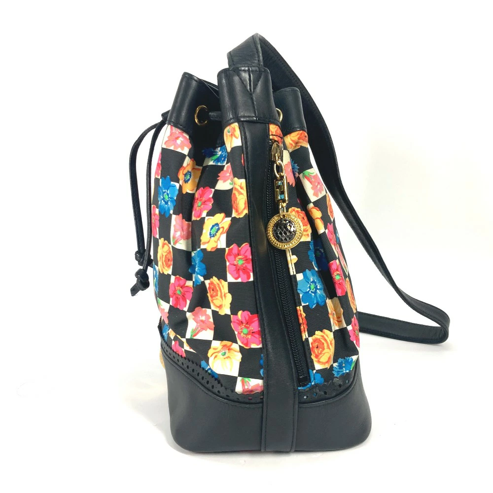 Pre-owned Versace floral chain bag, bucket-shaped, flower-patterned drawstring shoulder bag in PVC and leather, multicolor.