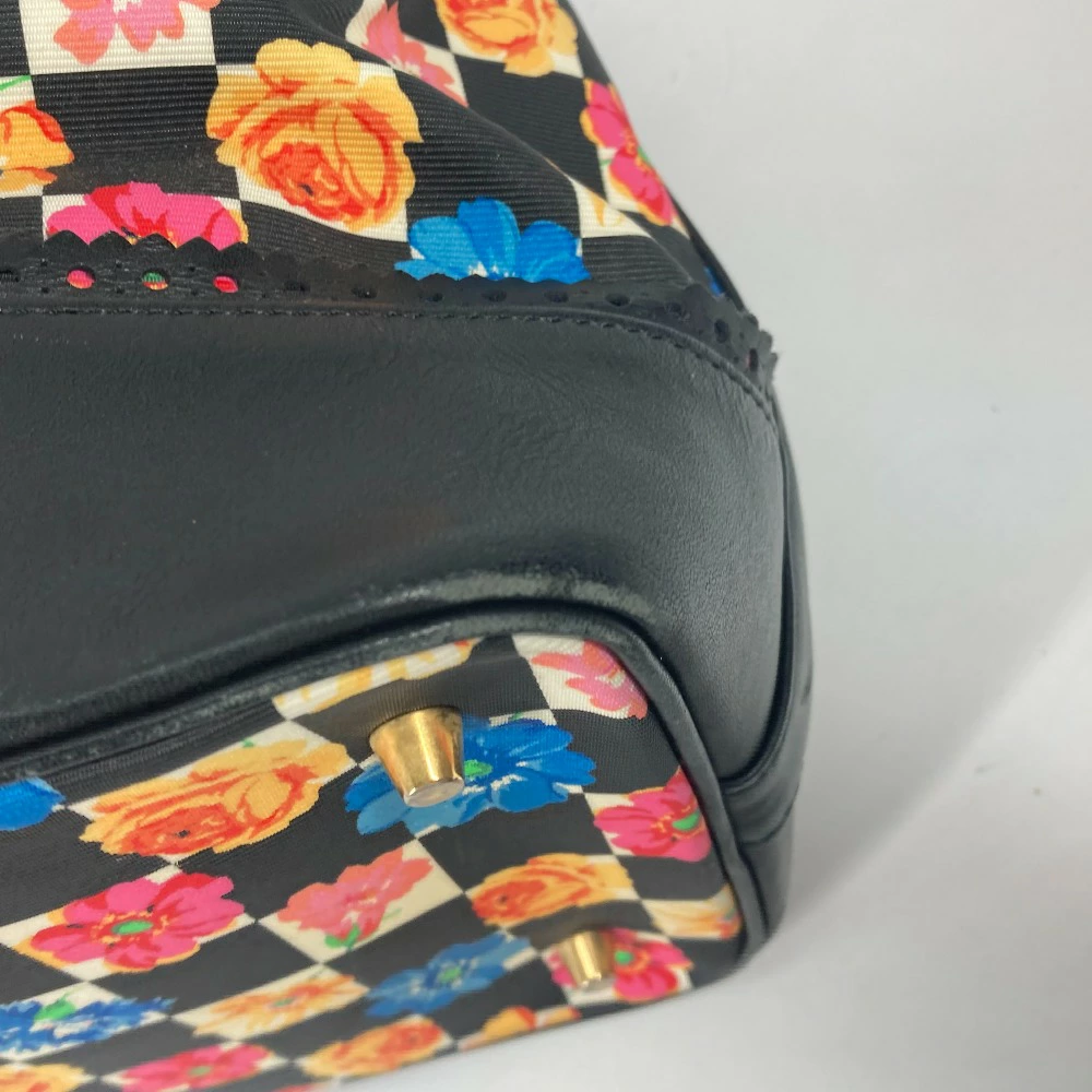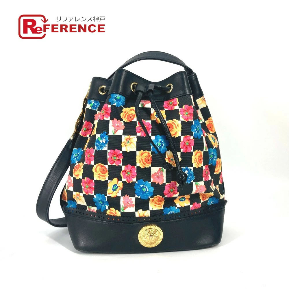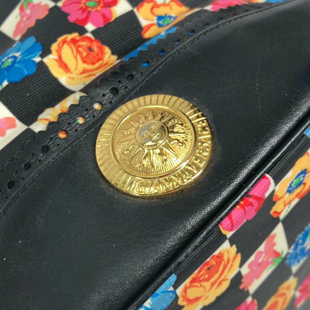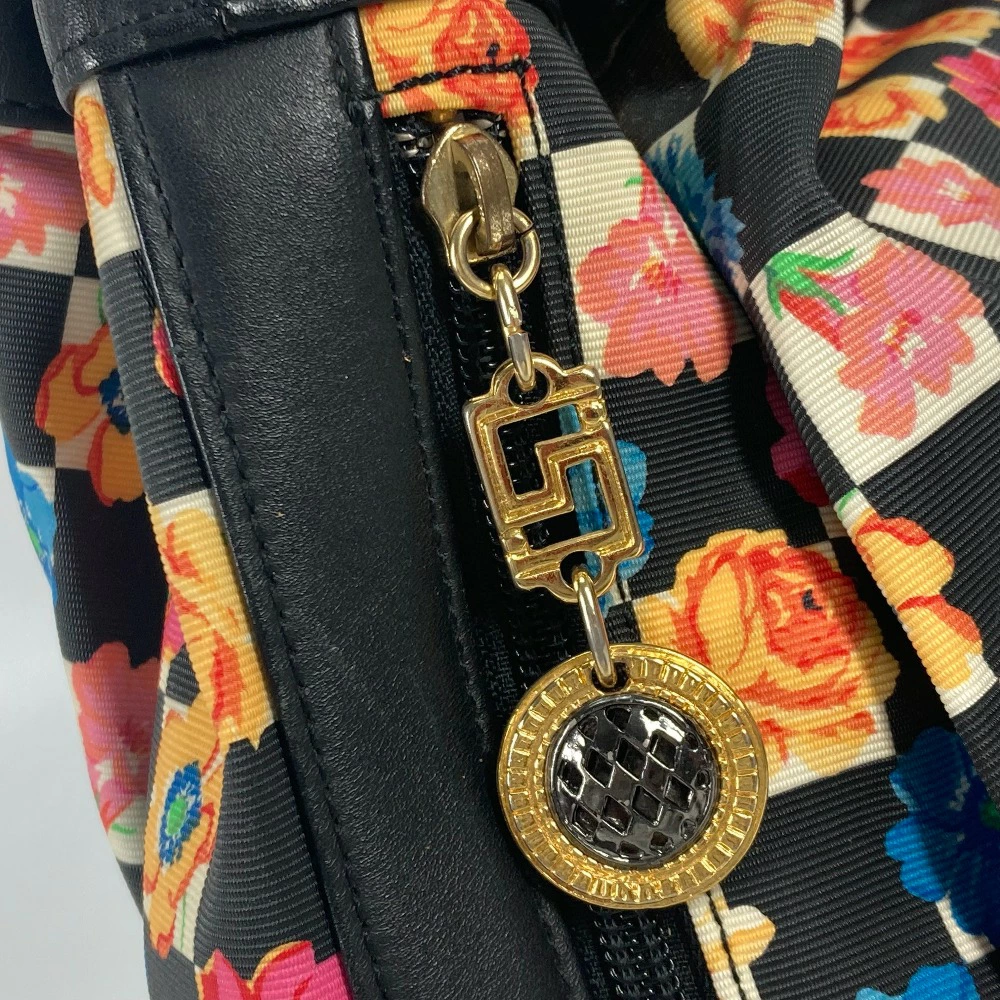 Pre-owned Versace floral chain bag, bucket-shaped, flower-patterned drawstring shoulder bag in PVC and leather, multicolor.