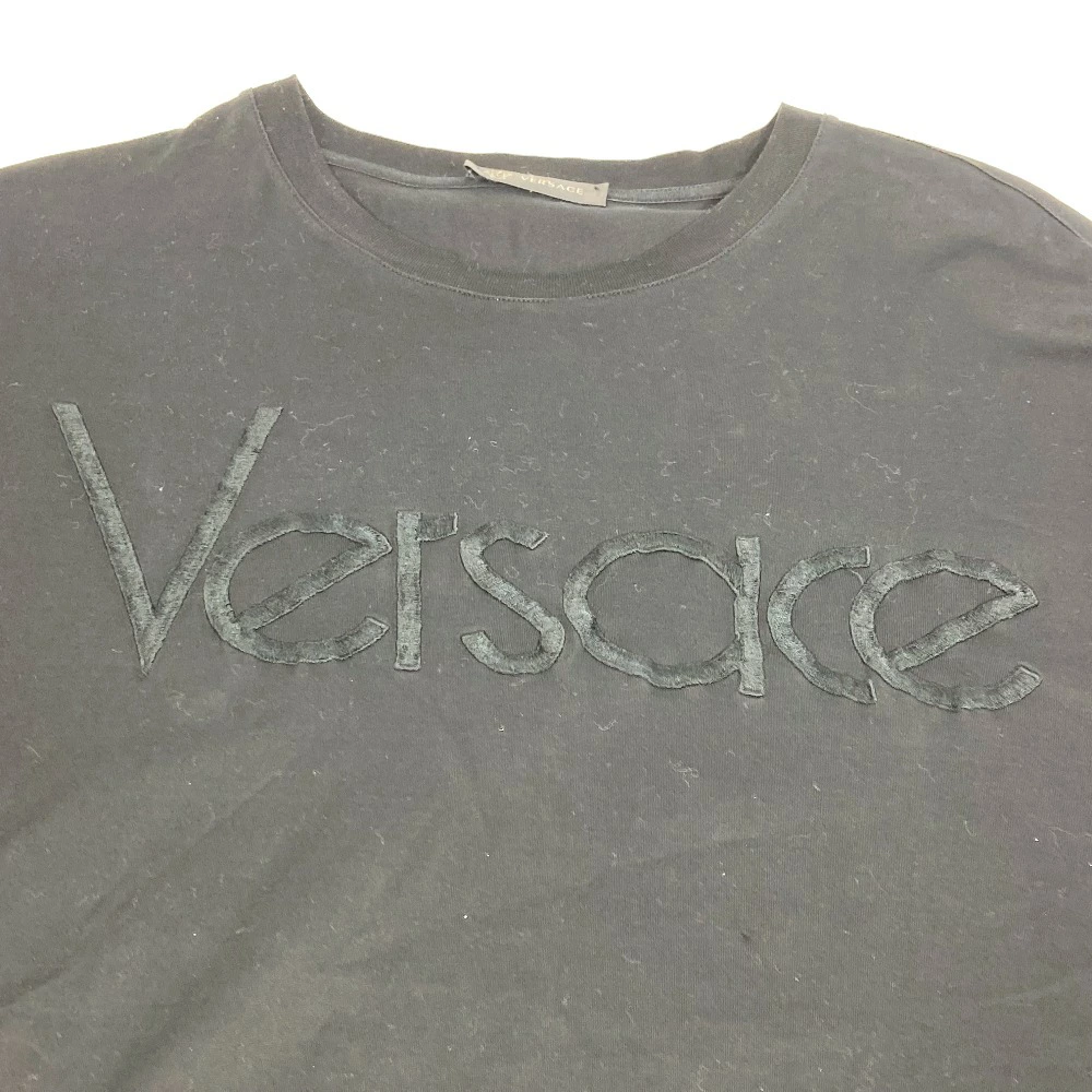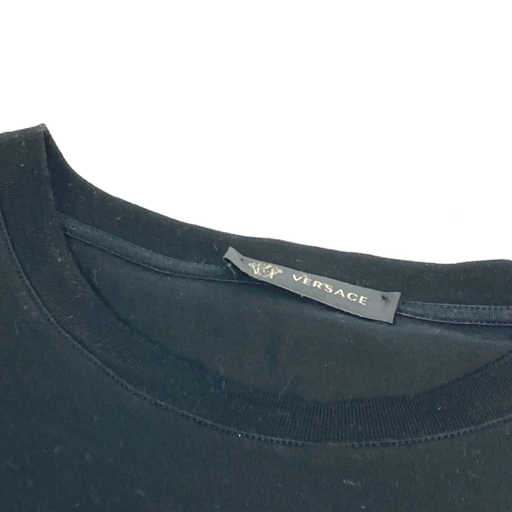 Pre-owned VERSACE logo apparel top, short-sleeved cotton T-shirt, black, for men.
